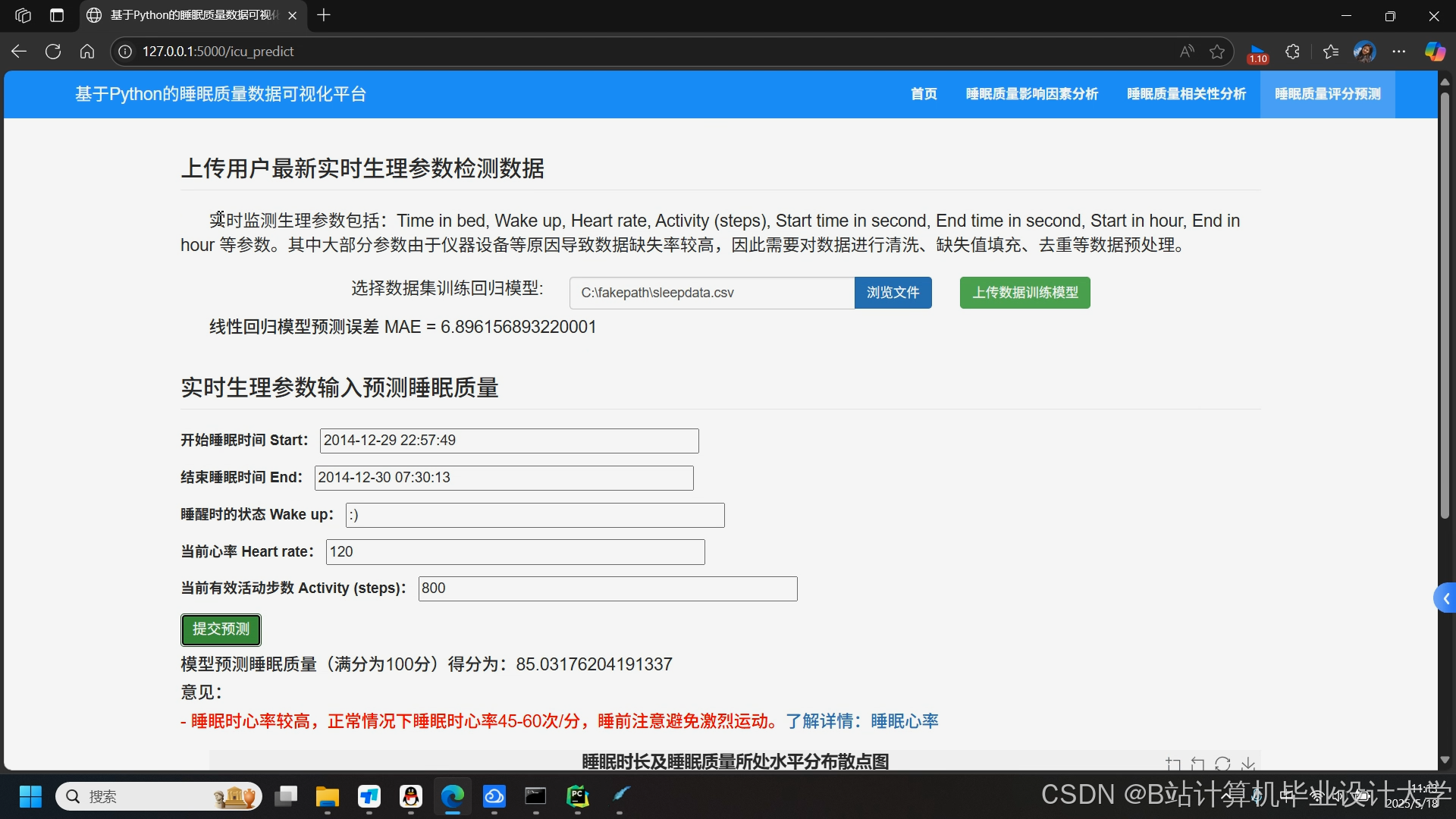 - 实践意义:通过对睡眠数据的分析预测,可以帮助用户了解自己的睡眠质量状况,及时发现潜在的睡眠问题,并提供个性化的睡眠改善建议。同时,睡眠质量可视化可以为医生、研究人员等提供直观的数据展示,辅助他们进行睡眠相关疾病的诊断和研究。