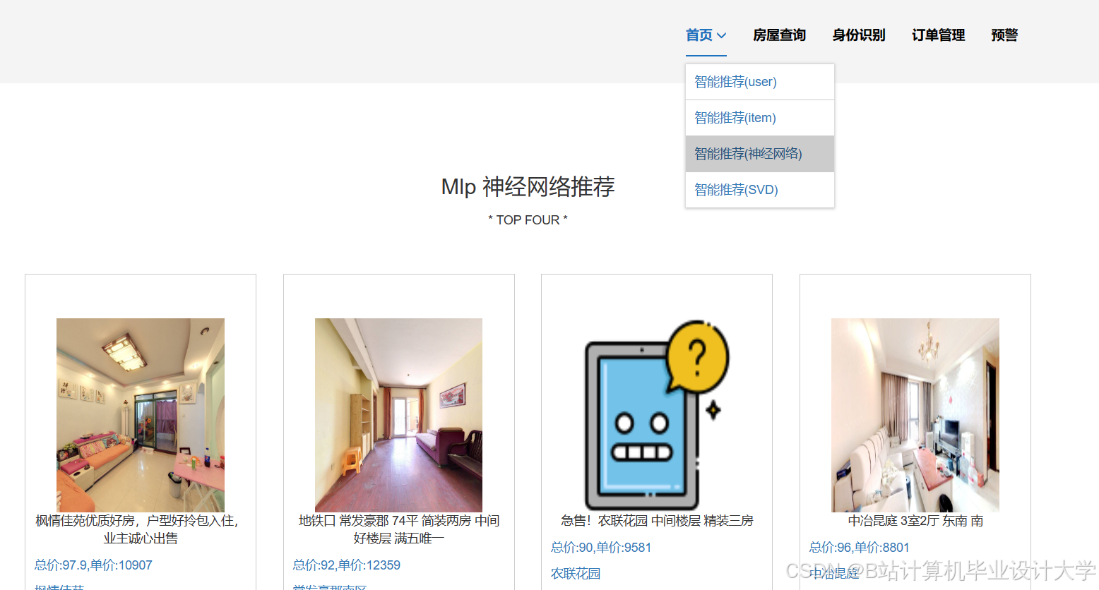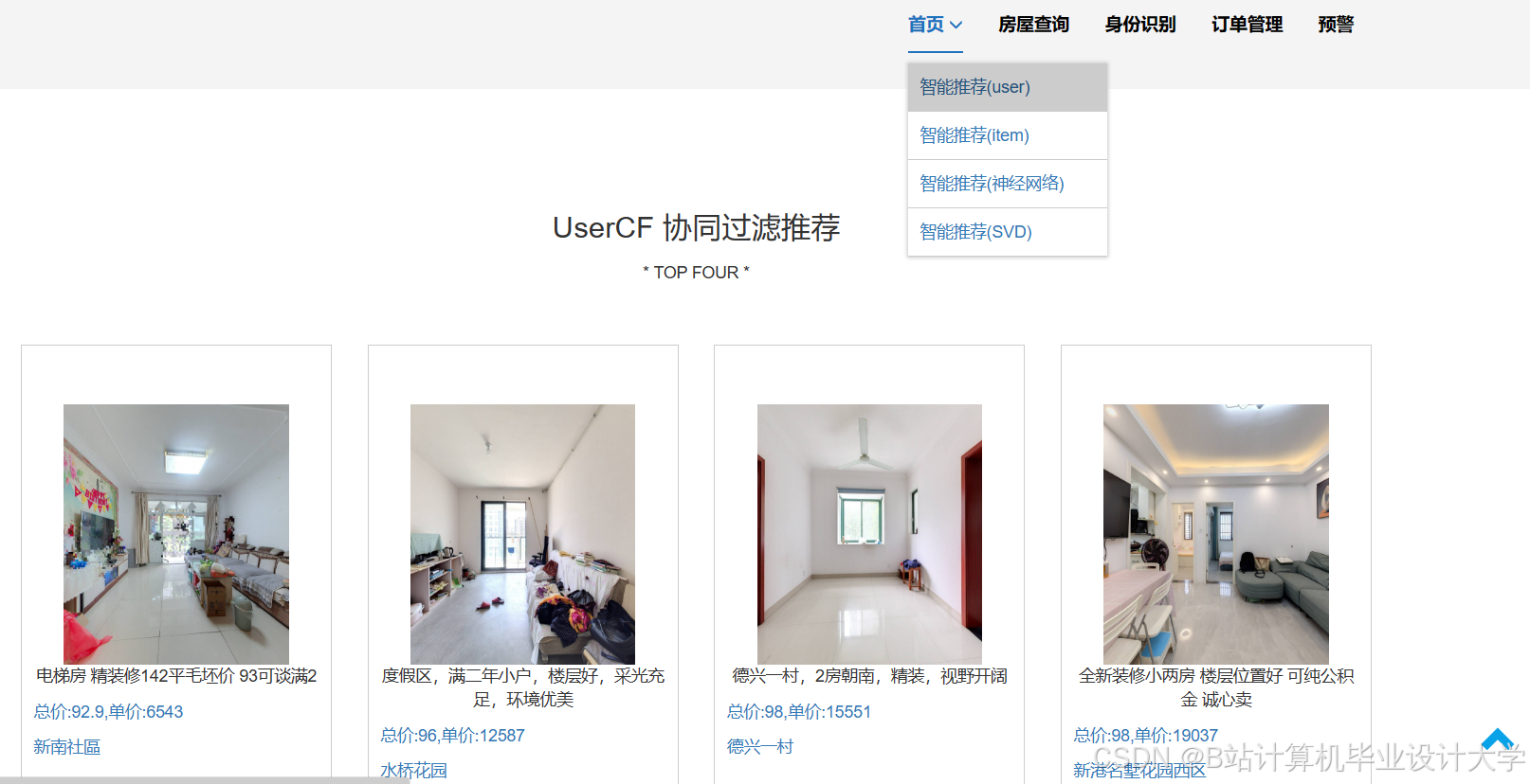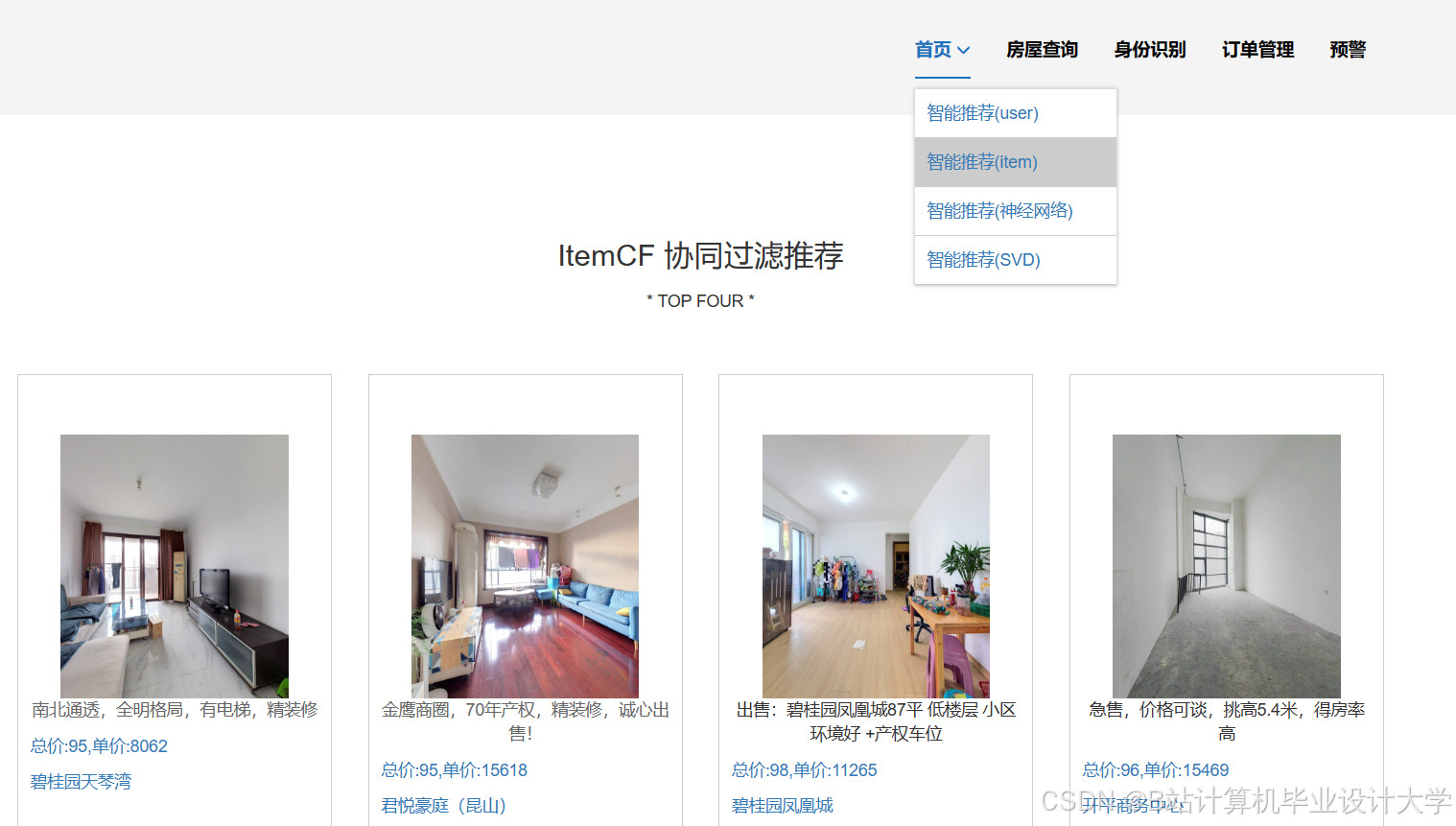 - 设计并实现个性化的房源推荐系统,根据用户偏好、预算等信息,为用户精准推荐符合需求的房源。