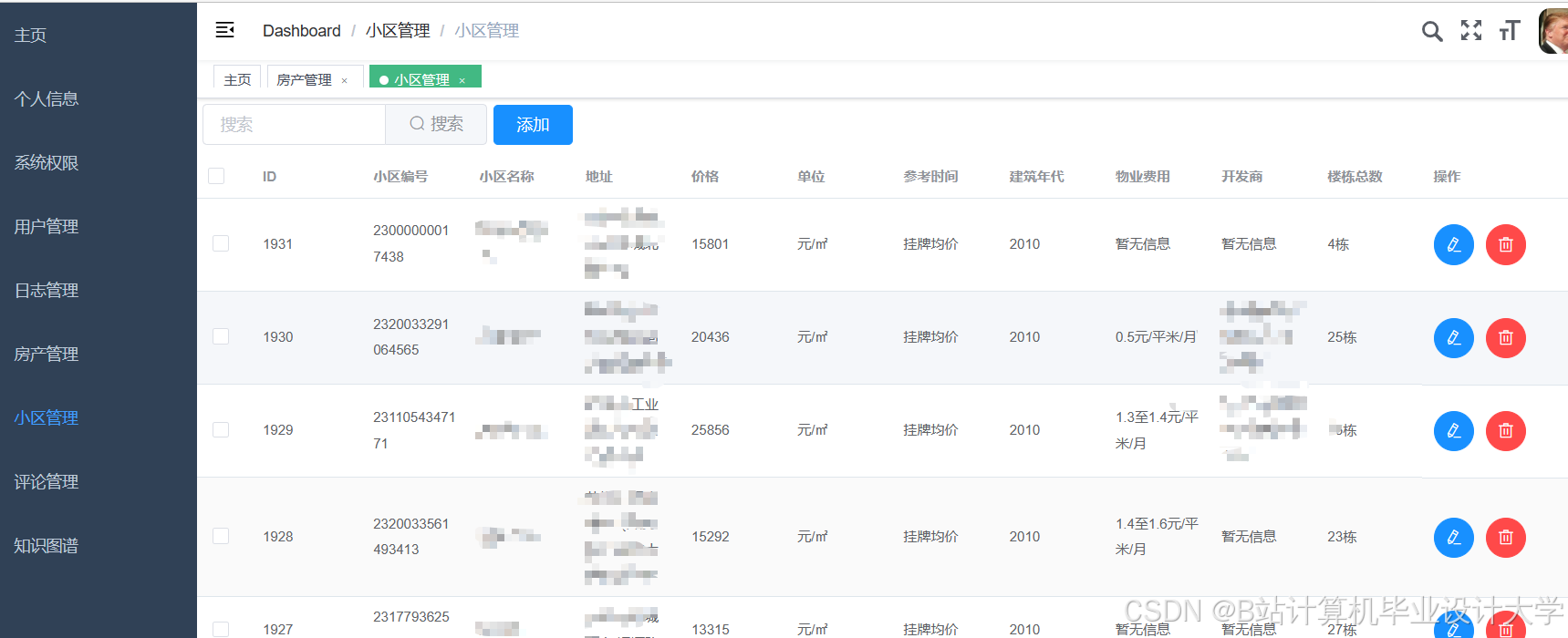 - 可视化界面:使用前端技术(如 HTML、CSS、JavaScript)和可视化库(如 ECharts、D3.js)开发用户界面,展示房价预测结果、房源推荐列表等信息。用户可以通过界面输入查询条件,获取相关的结果。