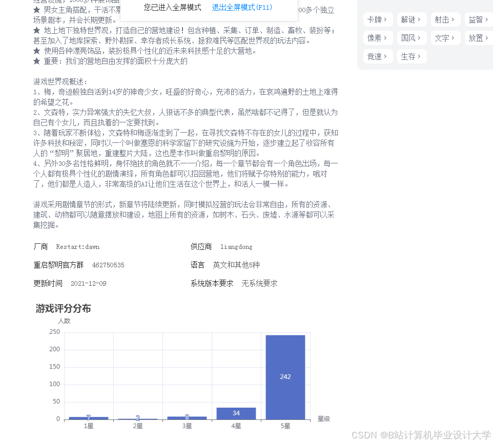 应用层为用户提供友好的交互界面,展示个性化的游戏推荐列表。使用Flask或Django等Web框架开发Web应用,前端展示使用HTML、CSS和JavaScript等技术。在应用中,通过调用推荐算法层生成的推荐结果API,获取用户的个性化推荐列表,并将推荐列表以直观的方式展示给用户。同时,利用ECharts等可视化工具,设计直观、易用的可视化大屏,展示游戏数据和推荐结果,如游戏特征雷达图、3D游戏关系网络、用户行为热力图等,提高用户对推荐结果的理解和接受度。