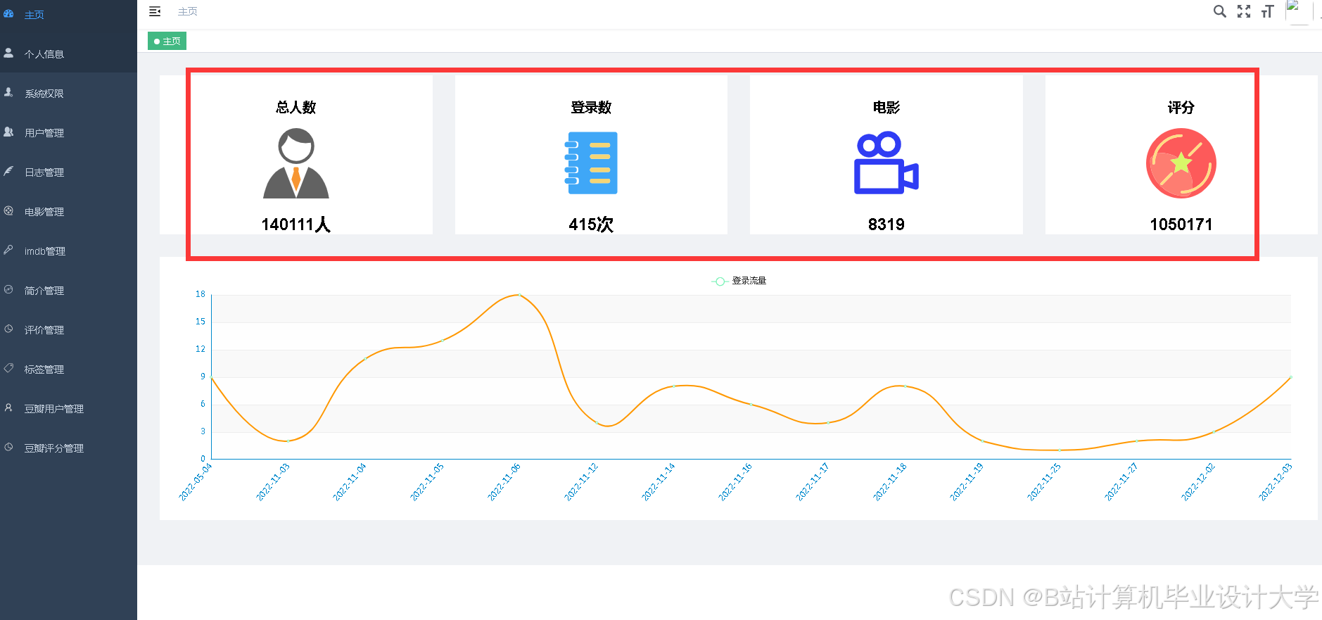 - 实现协同过滤算法和内容过滤算法,根据用户的历史行为数据和电影的特征信息,计算用户之间的相似度和电影之间的相似度。
