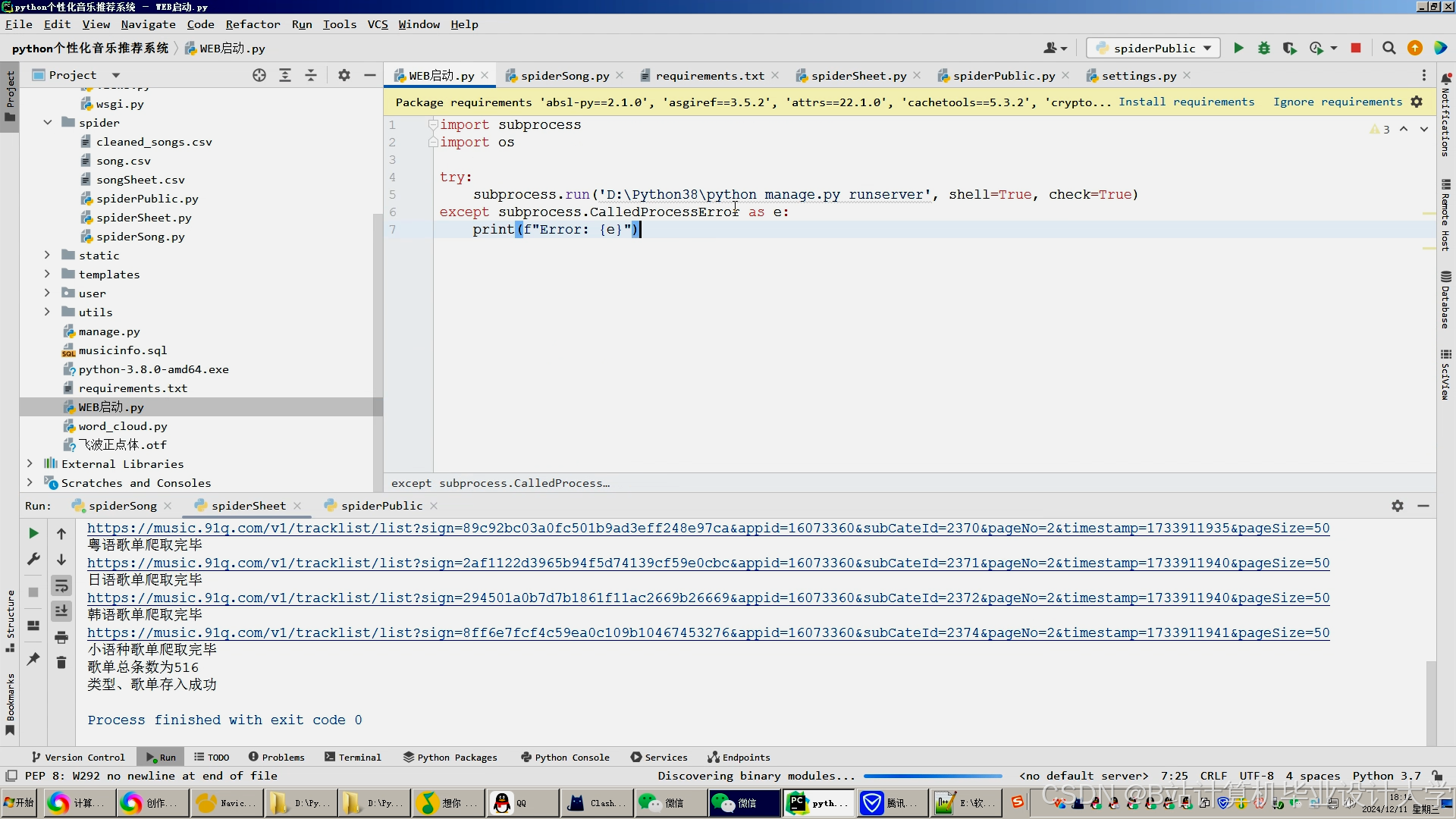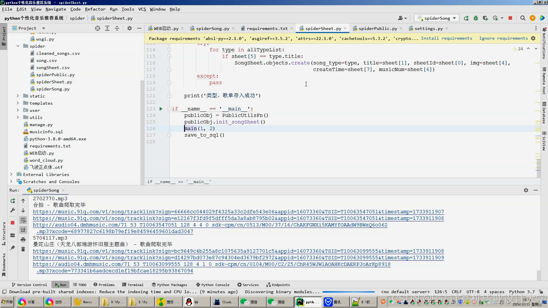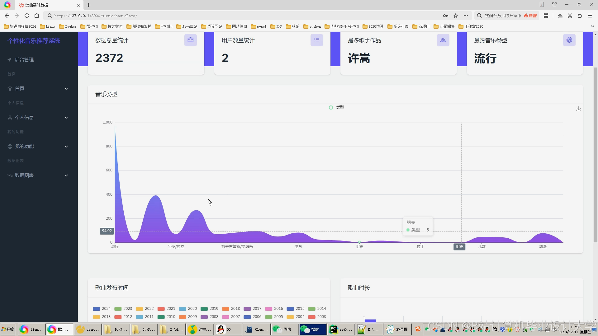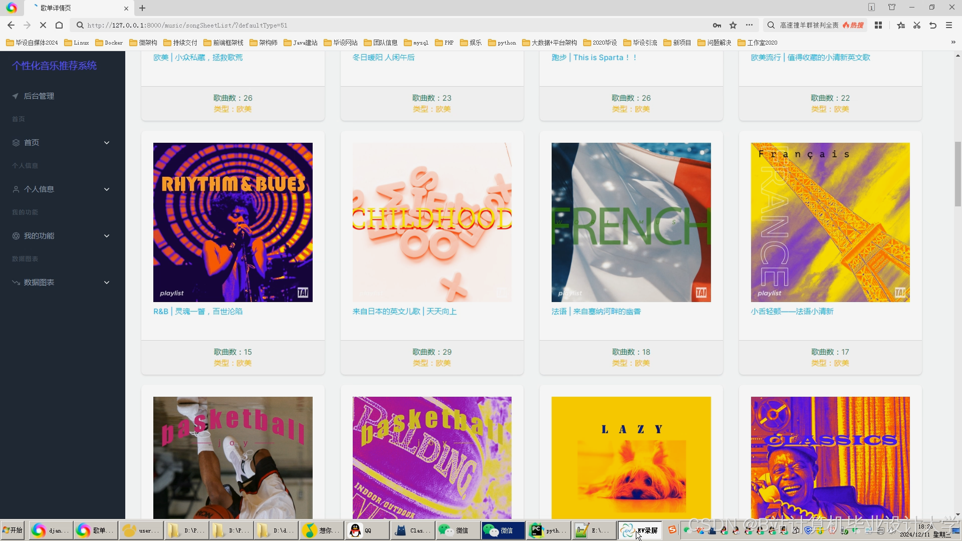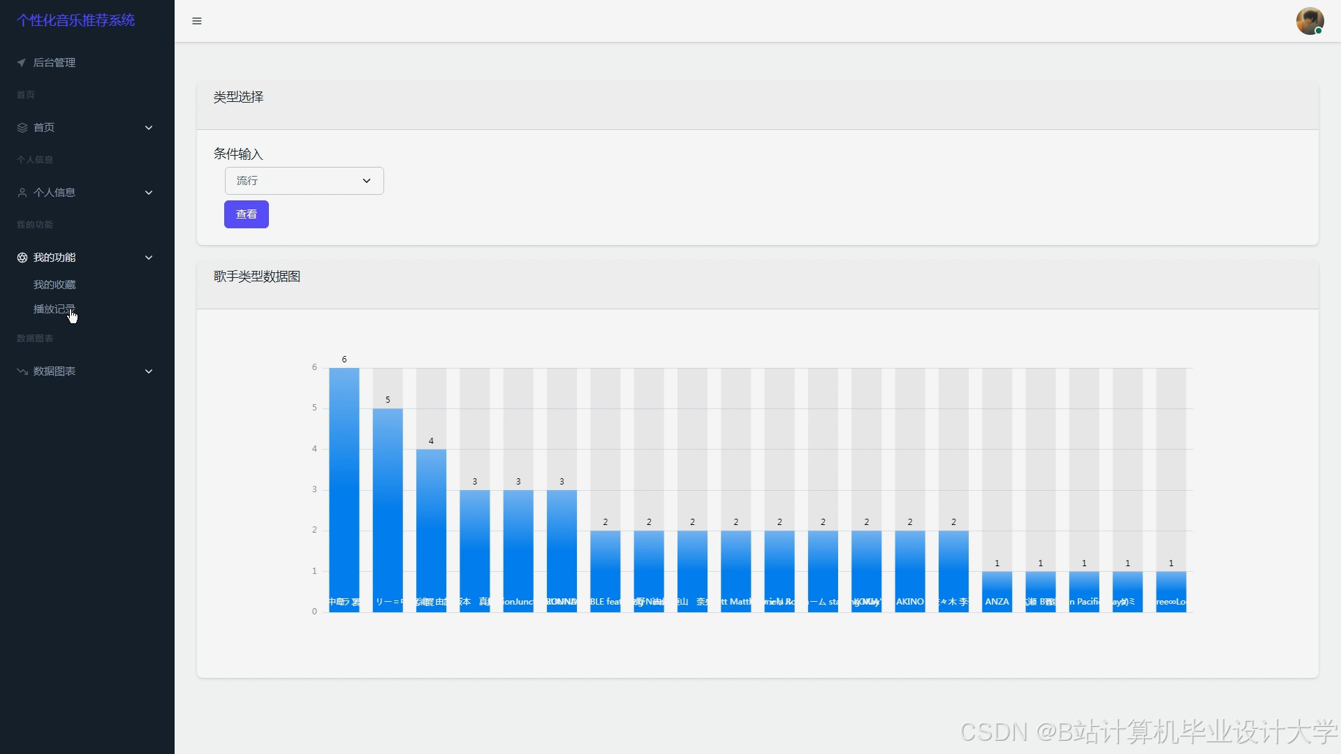 - 使用 Python 的 Web 框架(如 Flask 或 Django)或前端技术(如 HTML、CSS、JavaScript)构建用户界面,实现音乐展示、推荐结果展示、用户操作等功能。