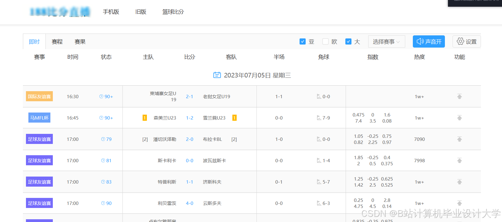 - 使用 Python 的 Scrapy 框架或 Java 的 Jsoup 库编写爬虫程序,采集体育赛事平台的相关数据。