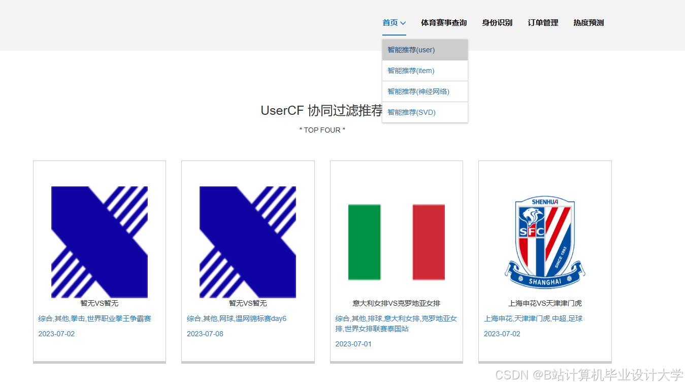 - 将推荐算法集成到系统中,实现赛事推荐功能。对系统进行测试和优化,确保系统的稳定性和性能。