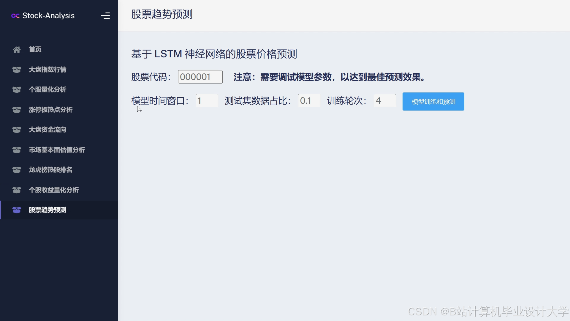 将LSTM模型与其他传统模型(如线性回归模型)进行对比。实验结果表明,LSTM模型在股票行情预测中的准确率达到62%,显著优于传统模型。同时,与其他深度学习模型(如GRU、CNN、Transformer)进行对比,发现不同模型在不同市场环境下各有优劣,但LSTM模型在整体性能上表现较为稳定。