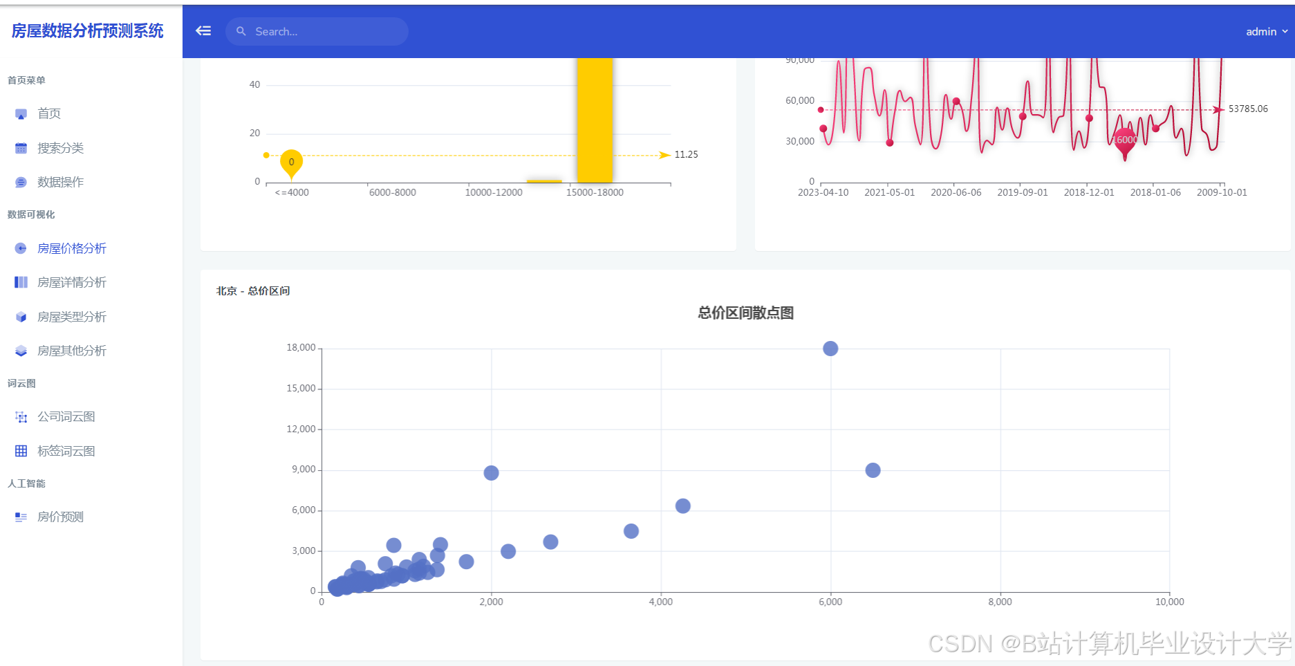 开发基于 Web 的用户界面,使用前端技术(如 HTML、CSS、JavaScript)和可视化库(如 ECharts、D3.js)实现。用户可以通过界面输入查询条件,如房屋的位置、面积、户型等,获取房价预测结果。界面还可以展示房价的历史走势、区域房价分布图等信息,帮助用户直观地了解房价情况。 - API 接口