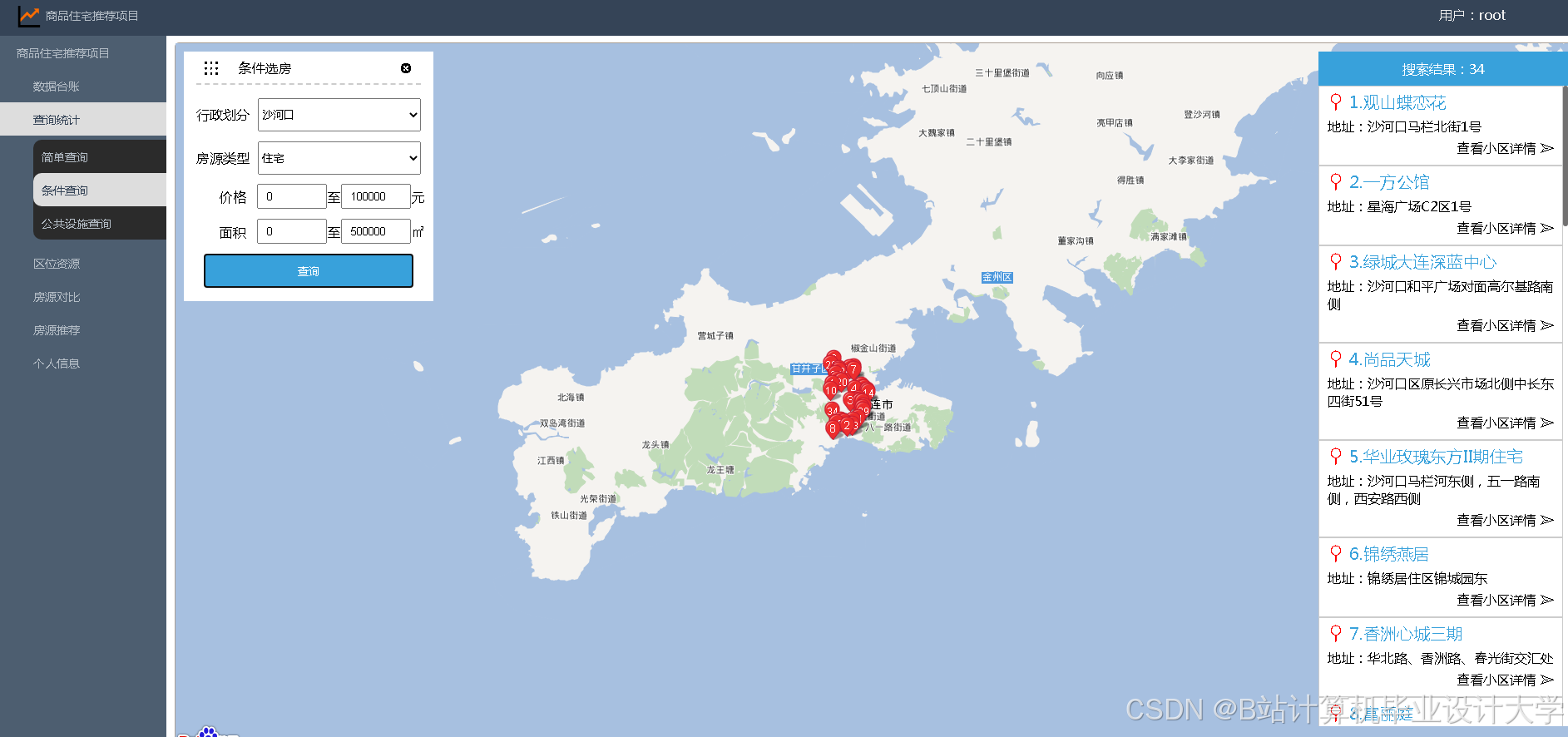 - 设计并开发一个基于 Hadoop 和 Spark 的房价预测系统,具备友好的用户界面,方便用户输入查询条件(如房屋特征、地理位置等)并获取房价预测结果。