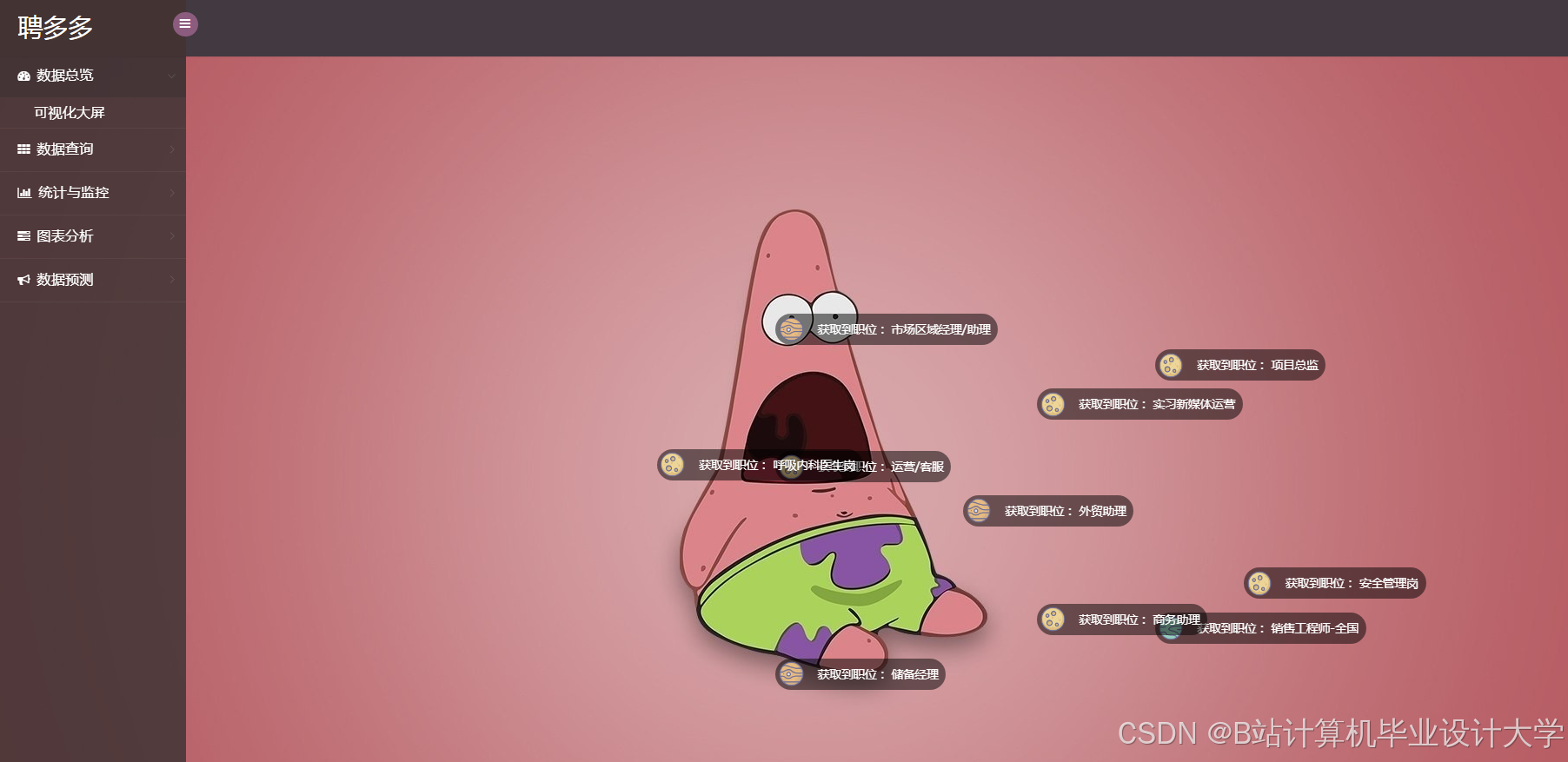 - 负责从各大招聘网站爬取岗位信息、候选人简历、薪资数据等,确保数据的全面性和准确性。