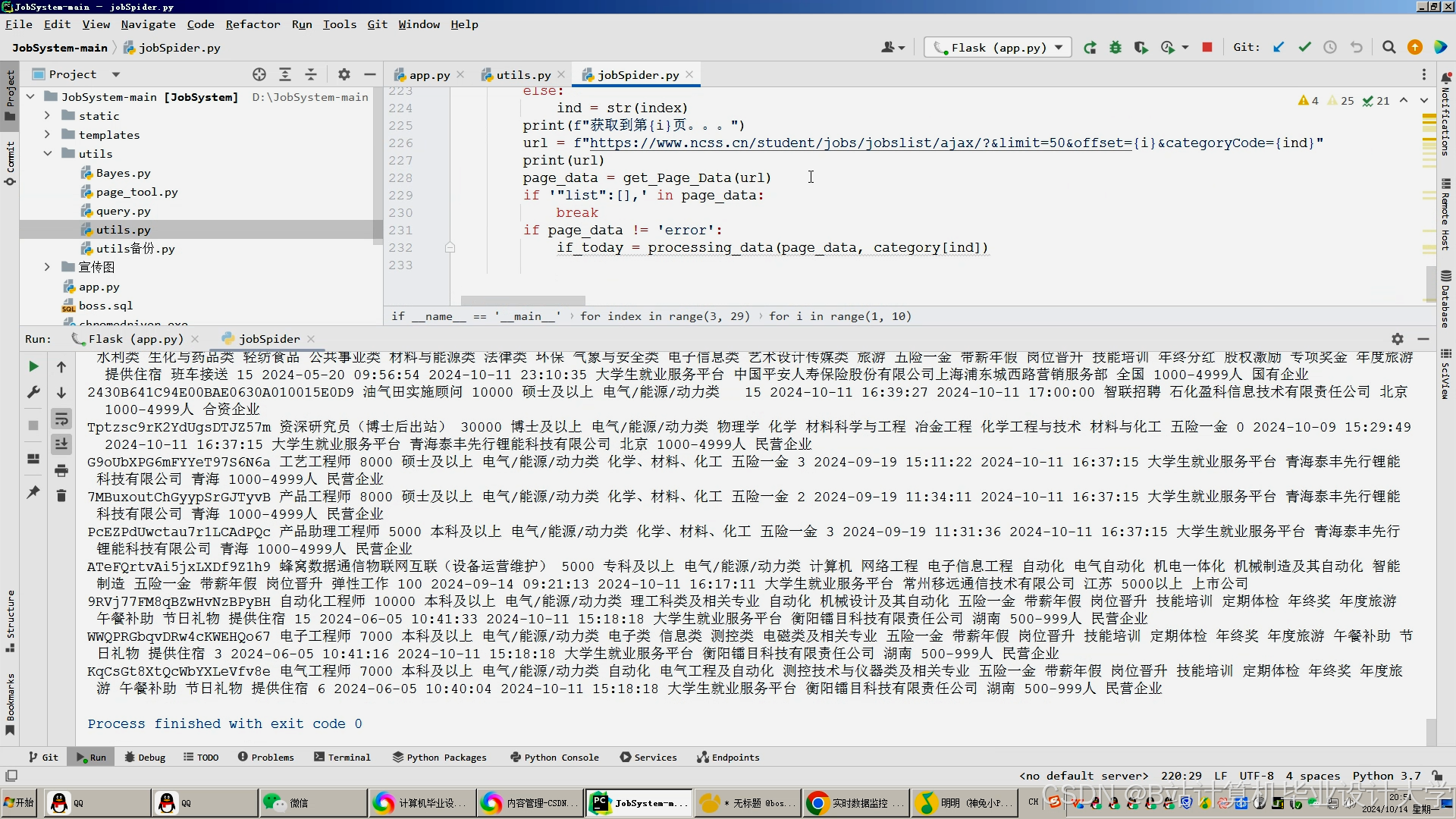 - 将采集到的数据存储到数据库中,建立相应的数据表,如岗位信息表、用户信息表等。