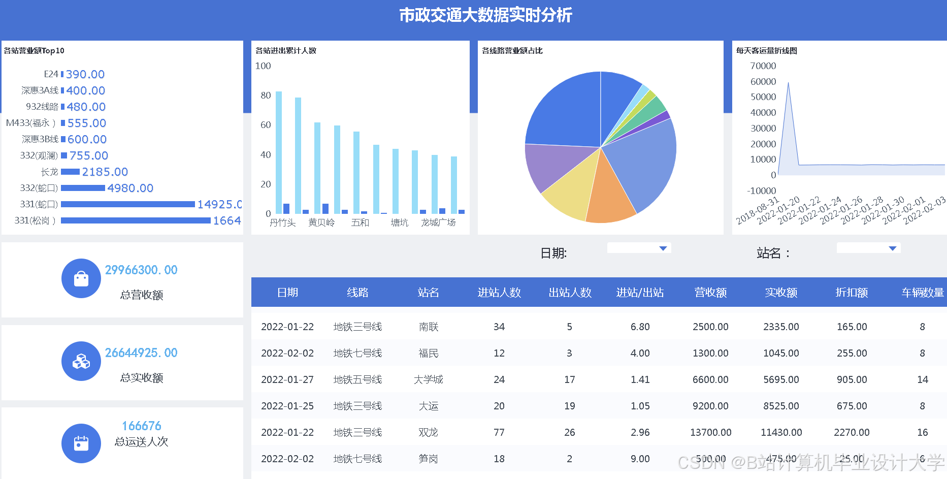 随着城市化进程加速,地铁客流量呈现指数级增长。以北京地铁为例,2024年日均客流量突破1200万人次,单日最高客流量达1350万人次,日均产生交通数据超5PB。传统关系型数据库在存储容量、处理速度及扩展性上已无法满足需求,而Hadoop、Spark和Hive等大数据技术为地铁客流量预测与可视化提供了创新解决方案。本文综述了相关技术在地铁预测可视化领域的研究进展,分析其技术架构、模型方法及应用实践,为智慧交通系统优化提供理论支持。