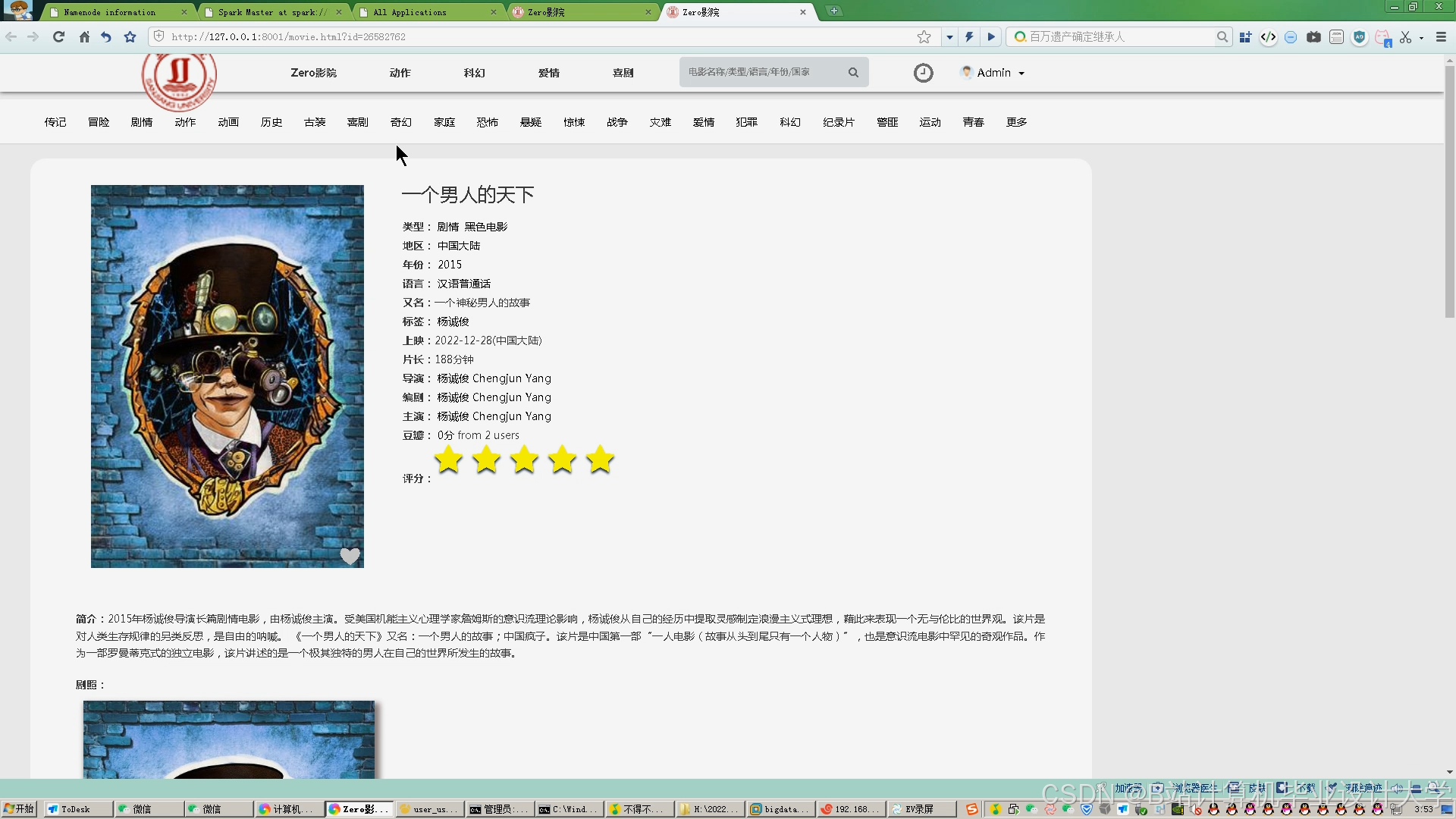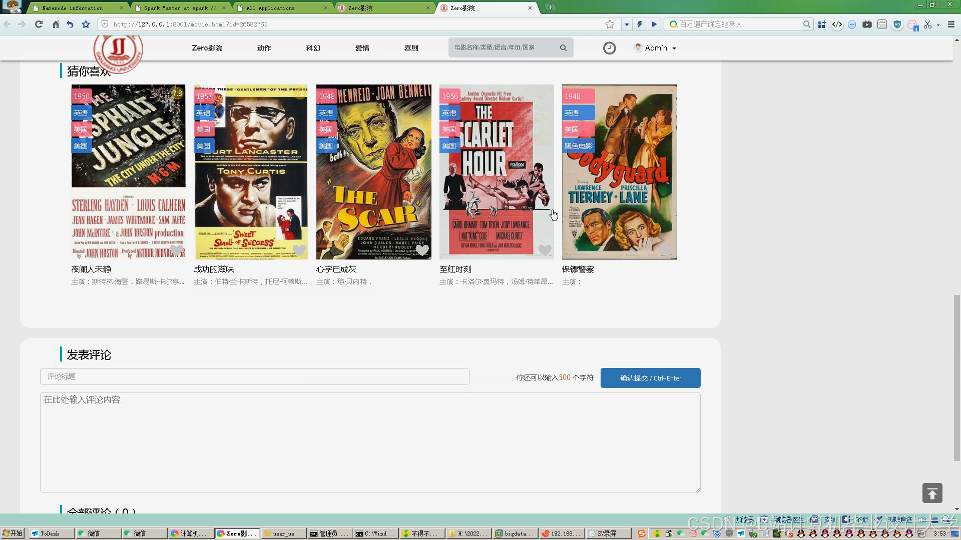 本系统基于Spark_Streaming(实时流处理)、Kafka(消息队列)、Hadoop(分布式存储)和Hive(数据仓库)技术栈,构建了一个高并发、低延迟的电影推荐系统。系统通过实时采集用户行为数据(如点击、评分、观看时长),结合离线计算的电影特征与用户画像,实现毫秒级响应的个性化推荐,支持千万级用户与百万级电影的分布式处理。