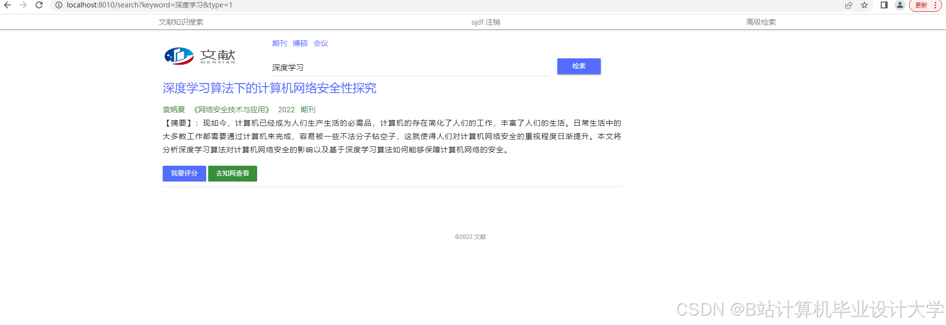 使用Flask框架开发RESTful API,为前端界面提供数据接口,处理用户请求并返回相应数据。前端采用Vue.js构建用户界面,提供简洁、直观的操作方式,用户可进行论文搜索、查看推荐结果、收藏论文等操作。同时,系统提供用户行为分析数据可视化功能,使用Echarts等可视化库实现用户阅读兴趣分布、热门论文推荐等数据可视化展示,帮助用户了解自身学术兴趣和阅读习惯。