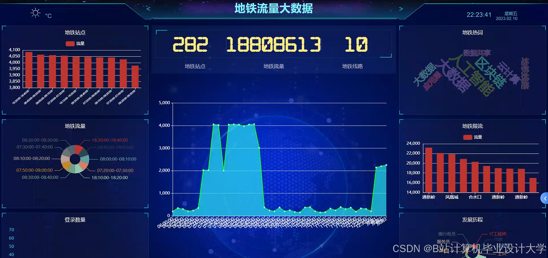 随着城市化进程的加速,地铁已成为城市公共交通的核心组成部分。以北京、上海等一线城市为例,2024年北京地铁日均客流量突破1200万人次,单日最高客流量达1350万人次,日均产生交通数据超5PB。如此庞大的客流量蕴含着乘客出行规律、站点负荷特征等关键信息,但传统数据处理方式面临诸多挑战。