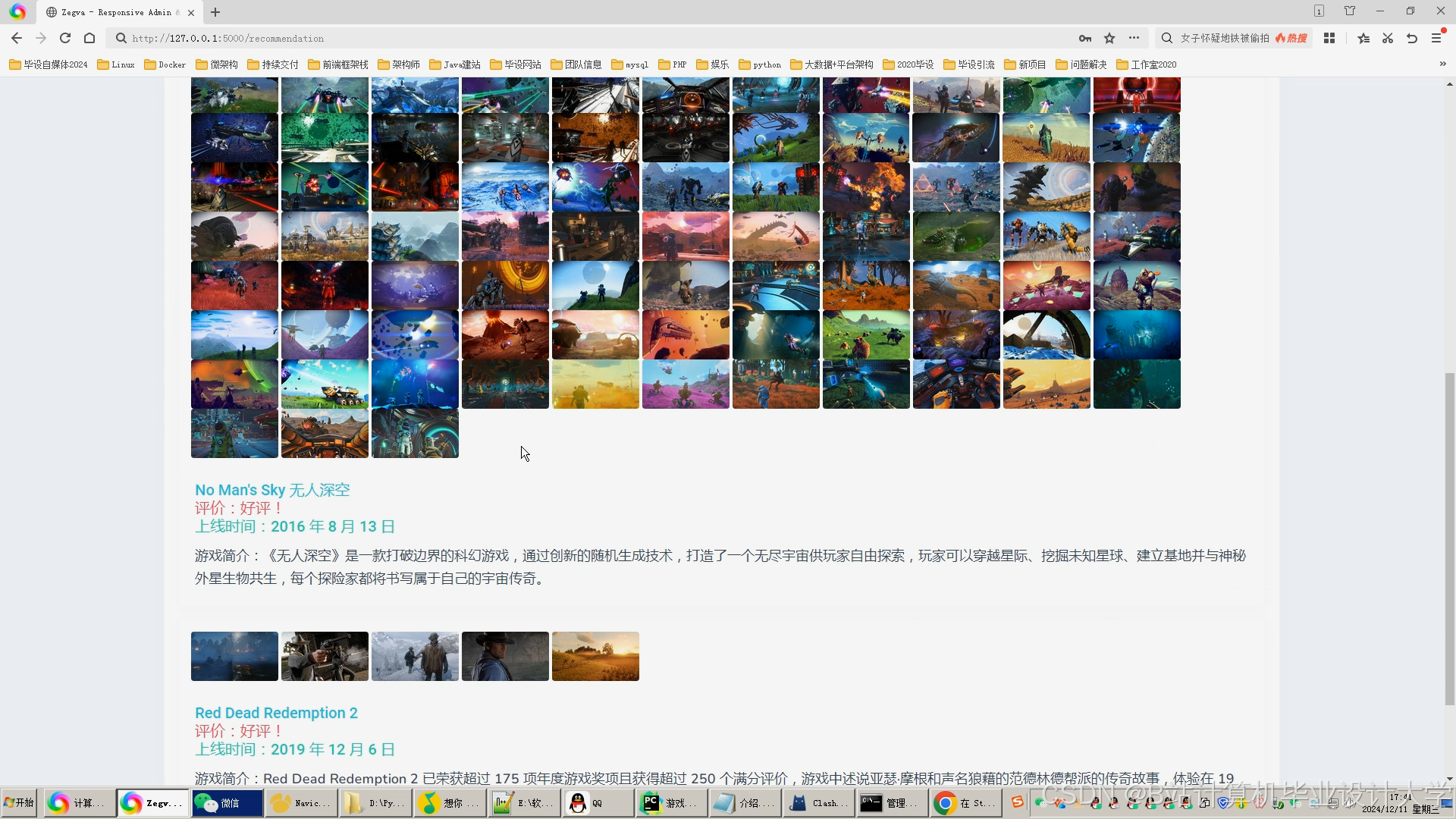 本文提出的Django+Vue.js深度学习游戏推荐系统,通过混合推荐算法与前后端分离架构,有效解决了传统系统的数据稀疏性与冷启动问题。实验验证了系统在推荐准确率与实时性上的优势,为游戏平台提供了可落地的技术方案。未来工作将聚焦于以下方向:其一,引入多模态数据(如游戏截图、视频)提升特征丰富度;其二,结合强化学习实现推荐策略的动态优化;其三,部署边缘计算节点降低服务器负载。