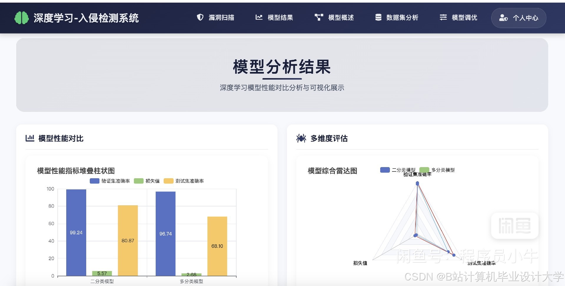 通过对系统在不同数据集上的测试,分析系统的检测性能。例如,在CICIDS2017数据集上进行测试,得到系统的准确率为95%,精确率为93%,召回率为96%,F1值为94.5%,误报率为5%。根据测试结果,对系统进行进一步的优化和改进。