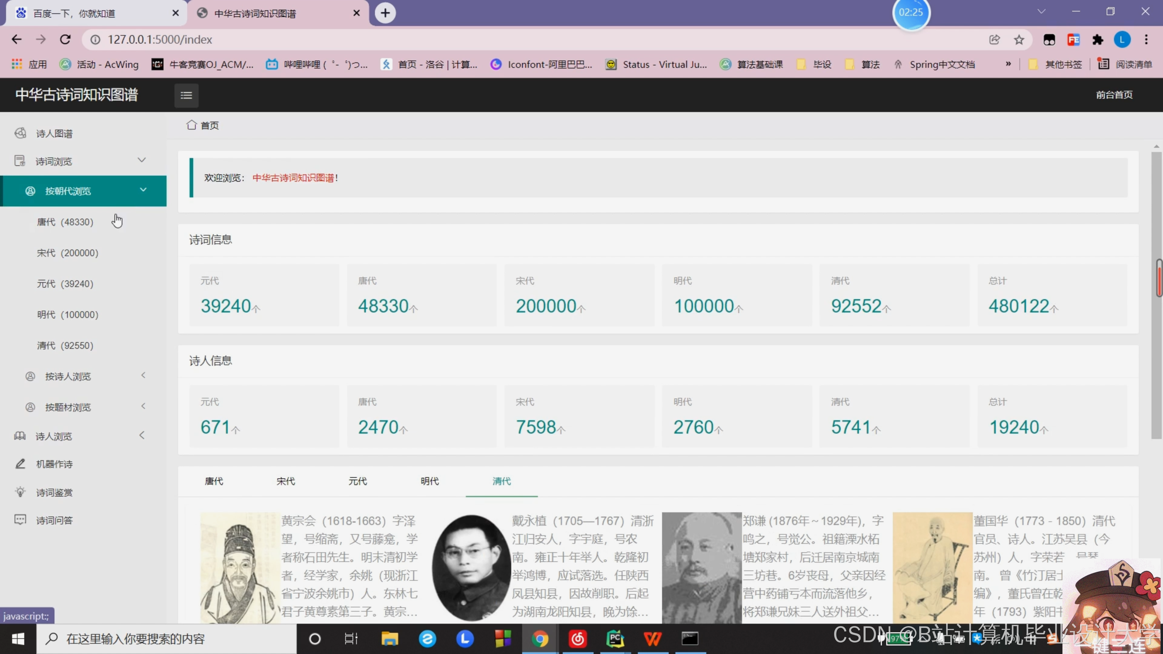 中华古诗词作为中华文明的重要载体,蕴含着丰富的历史、文化与情感内涵。随着自然语言处理(NLP)、知识图谱与可视化技术的深度融合,Python凭借其强大的数据处理能力、丰富的NLP工具链及可视化库,成为古诗词数字化挖掘与可视化展示的核心技术平台。本文系统梳理Python在古诗词知识图谱构建、可视化技术、情感分析及跨学科应用中的研究进展,探讨技术瓶颈与未来发展方向。
