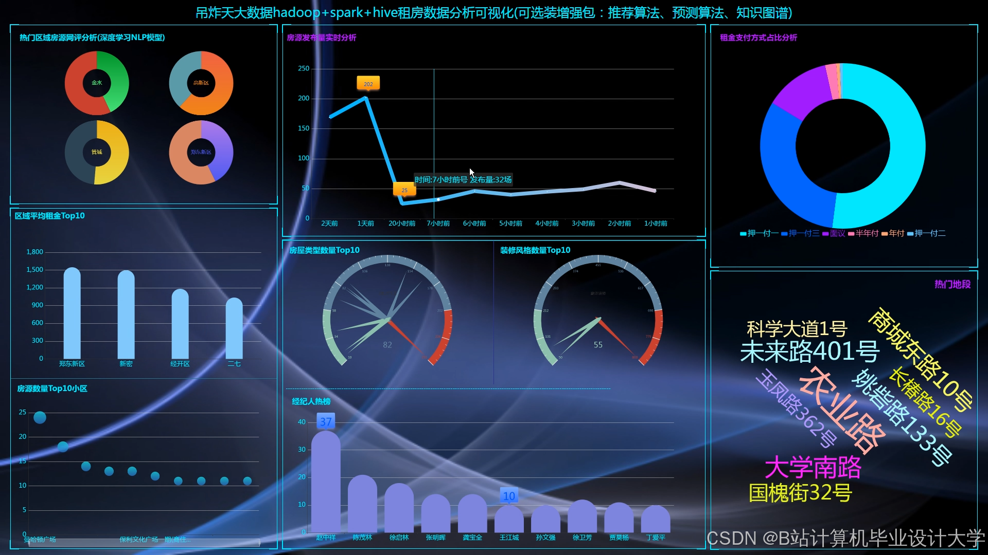 - HBase:存储实时状态数据(如房源在租/已租状态),通过RowKey设计(house_id+timestamp)实现毫秒级读写。