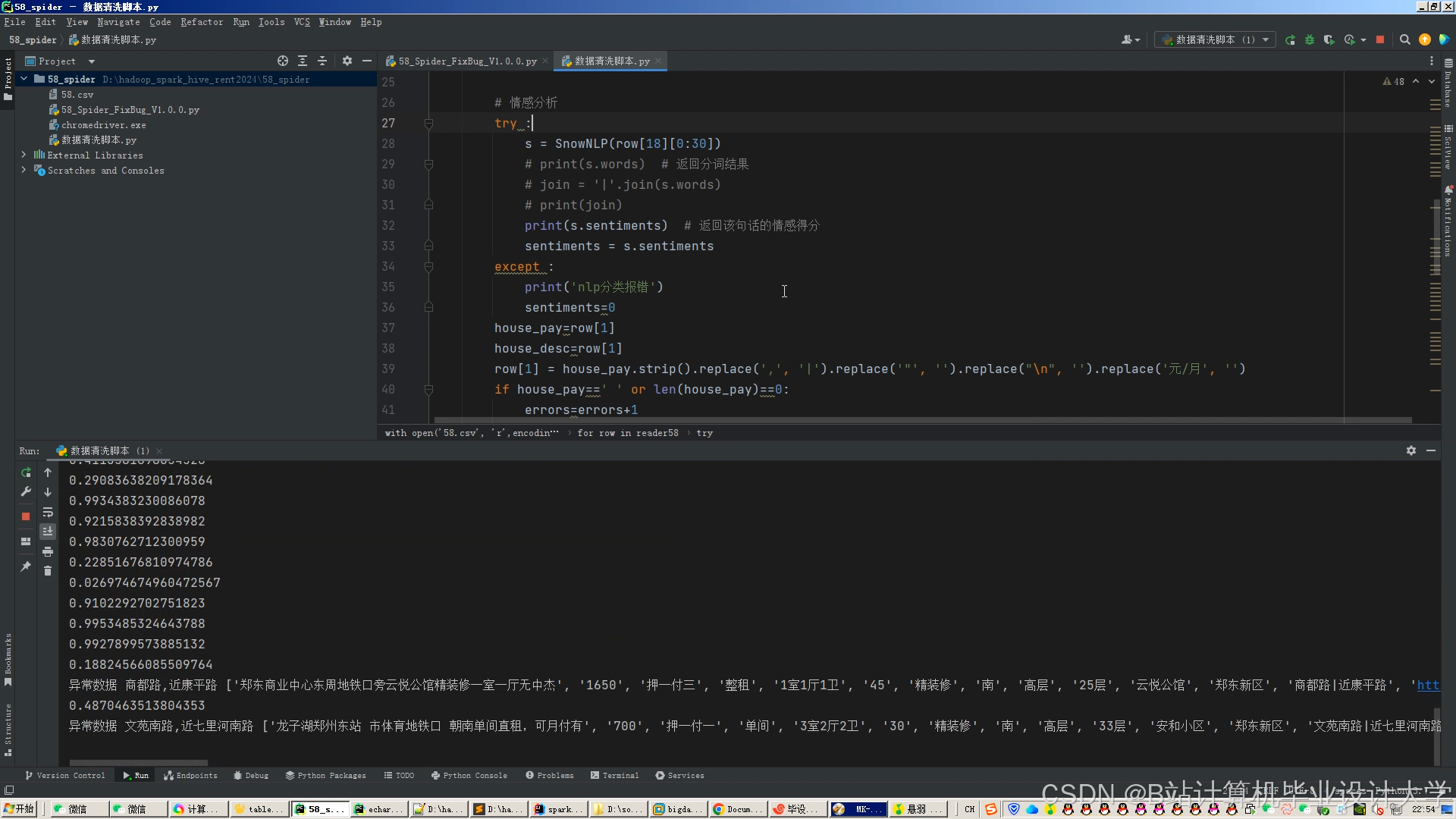 多源数据采集通过Scrapy分布式爬虫框架抓取链家、58同城等平台数据,结合Kafka实现实时缓冲。数据示例如下: