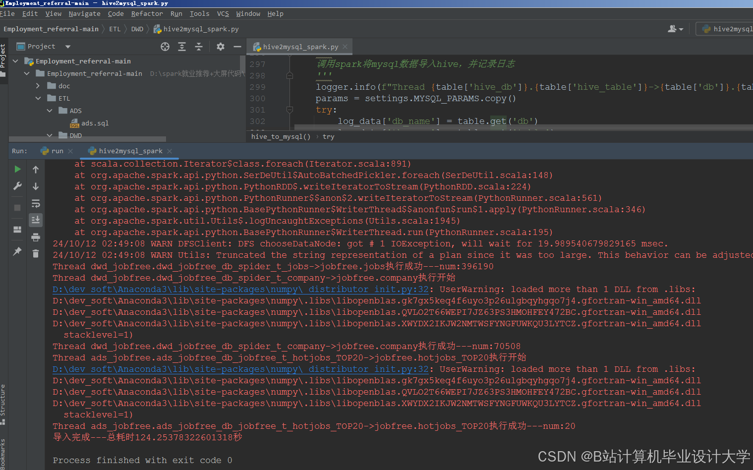 题目:基于Hadoop+Spark+Hive的招聘大数据分析可视化与招聘推荐系统研究
