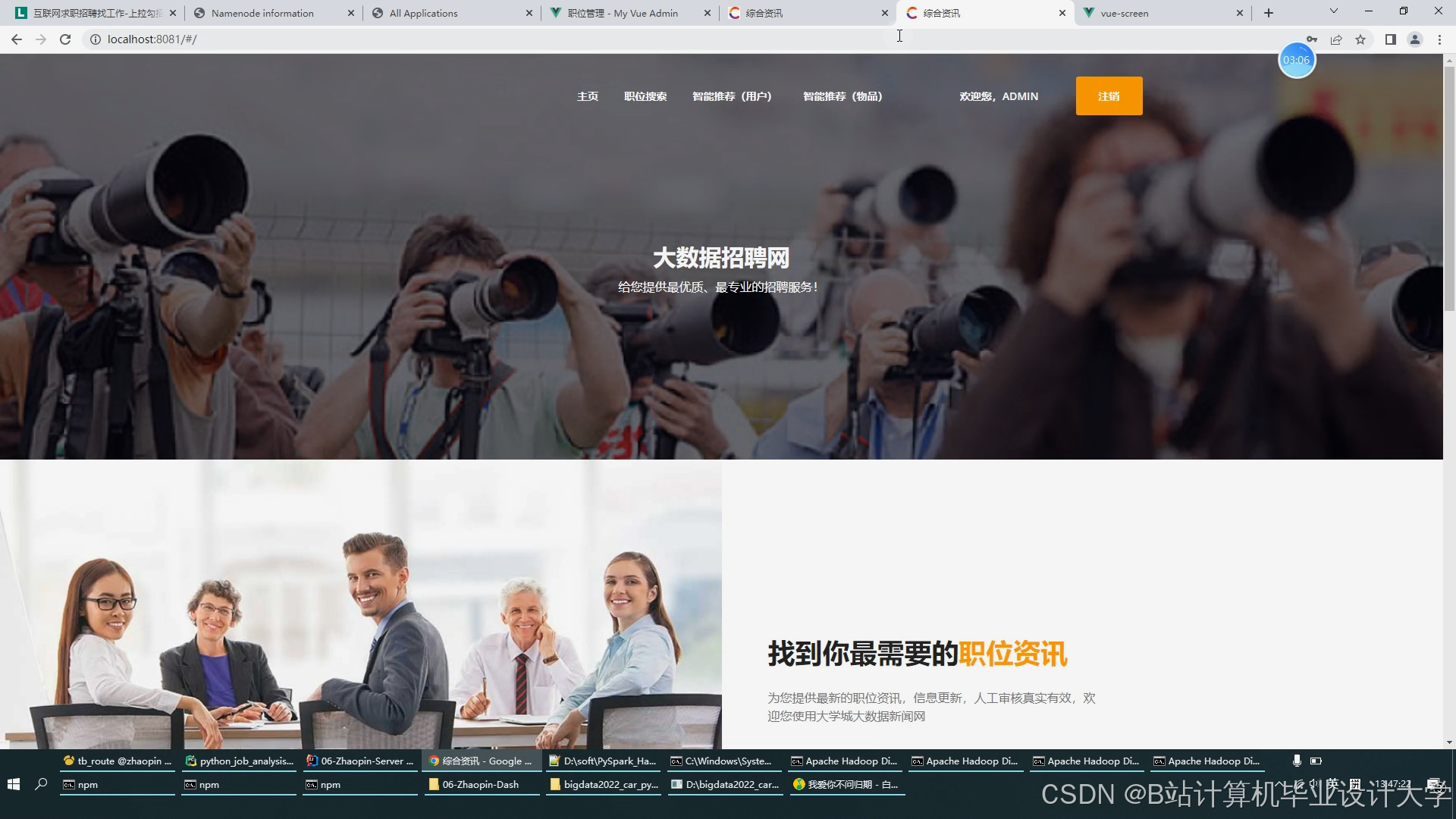 随着互联网招聘平台的普及,企业招聘和求职者行为数据呈现指数级增长。传统数据处理工具(如关系型数据库)在处理海量、高维、异构的招聘数据时面临效率低、扩展性差等问题。Hadoop生态系统(Hadoop+Spark+Hive)凭借其分布式存储与计算能力,成为招聘大数据分析的核心技术栈。同时,结合可视化技术与智能化推荐算法,可进一步挖掘数据价值,实现“人岗精准匹配”。本文综述了近年来相关领域的研究成果,重点分析Hadoop生态技术在招聘场景中的应用模式、现存问题及未来方向。