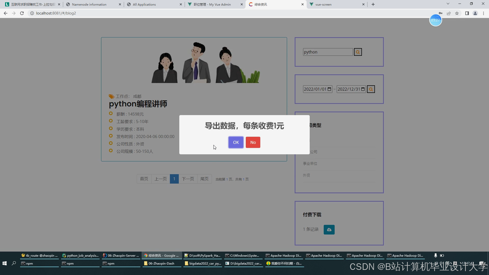 [6] 张伟, 等. 招聘数据可视化分析系统设计与实现[J]. 软件导刊, 2020, 19(4): 156-160.