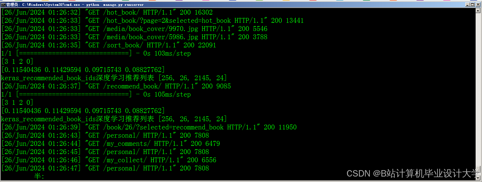 - 在线部分:通过Django接收用户实时行为,结合内容相似度(如余弦相似度)调整推荐列表。