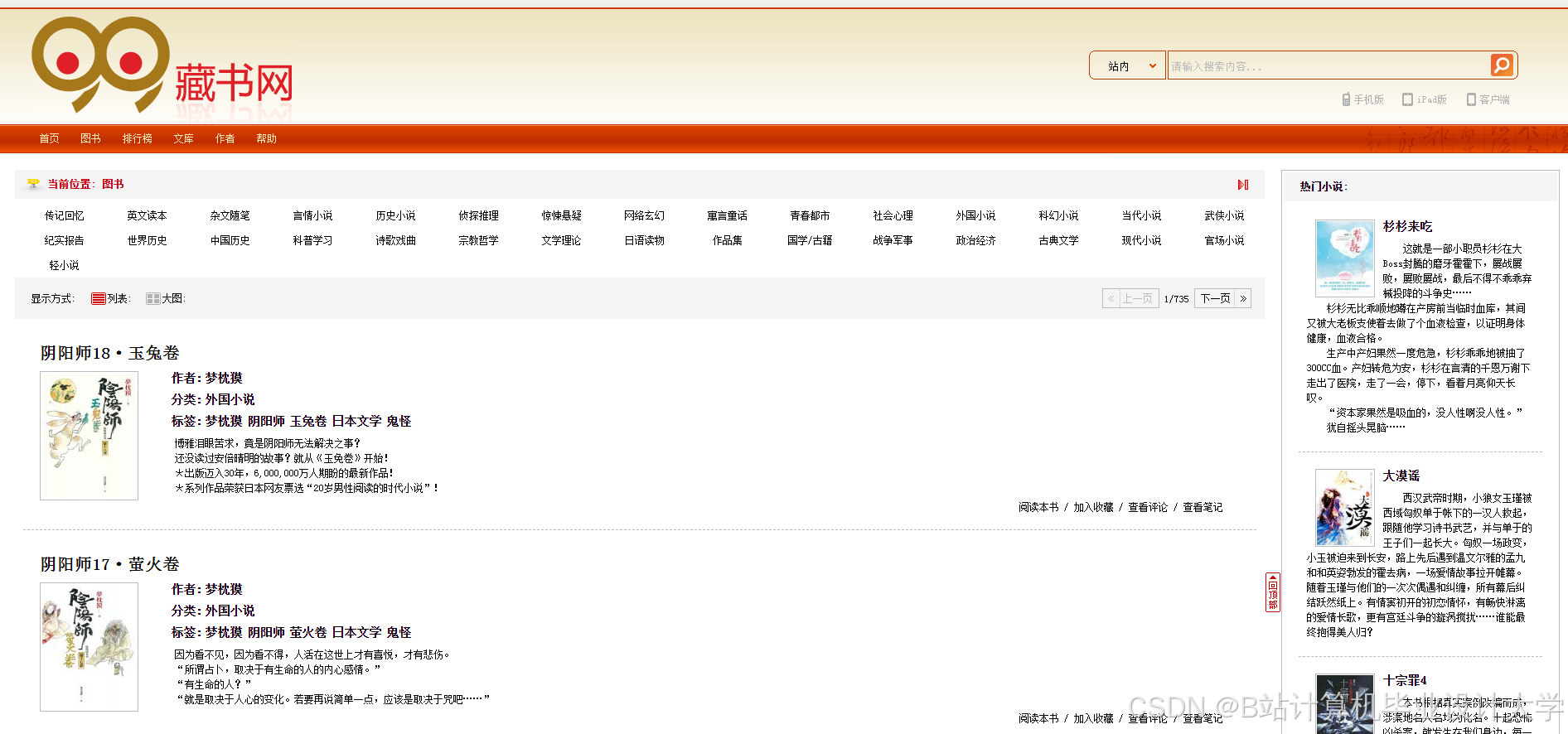 - 管理员后台可管理小说数据(增删改查)、查看用户行为日志。