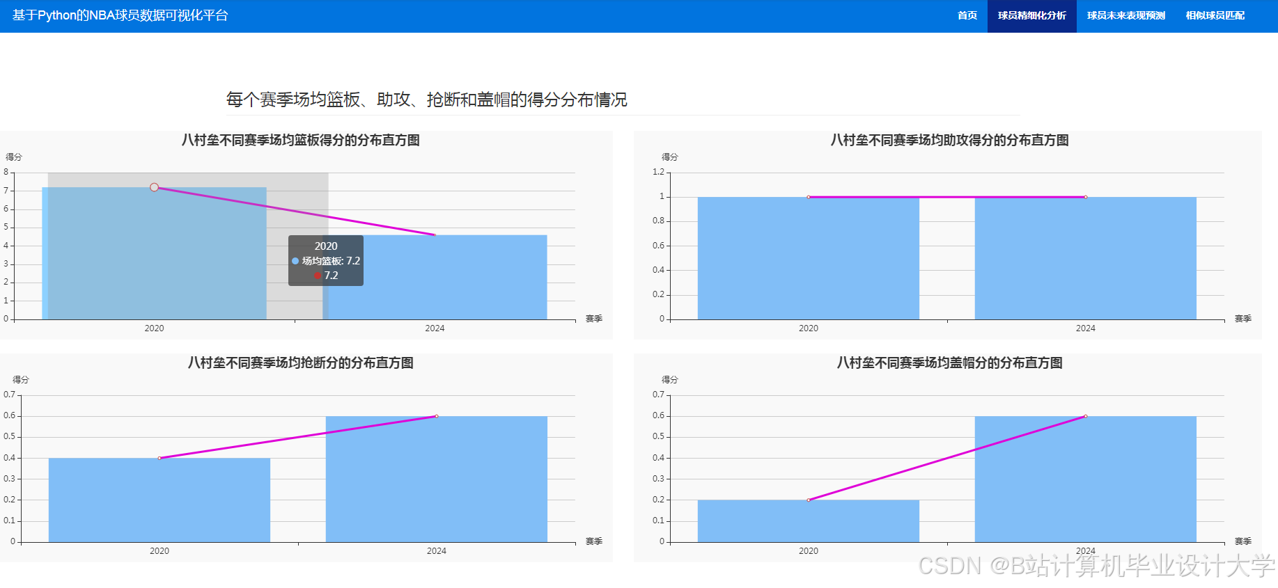- 球员对比雷达图:支持多维度能力对比(如得分、防守、组织)