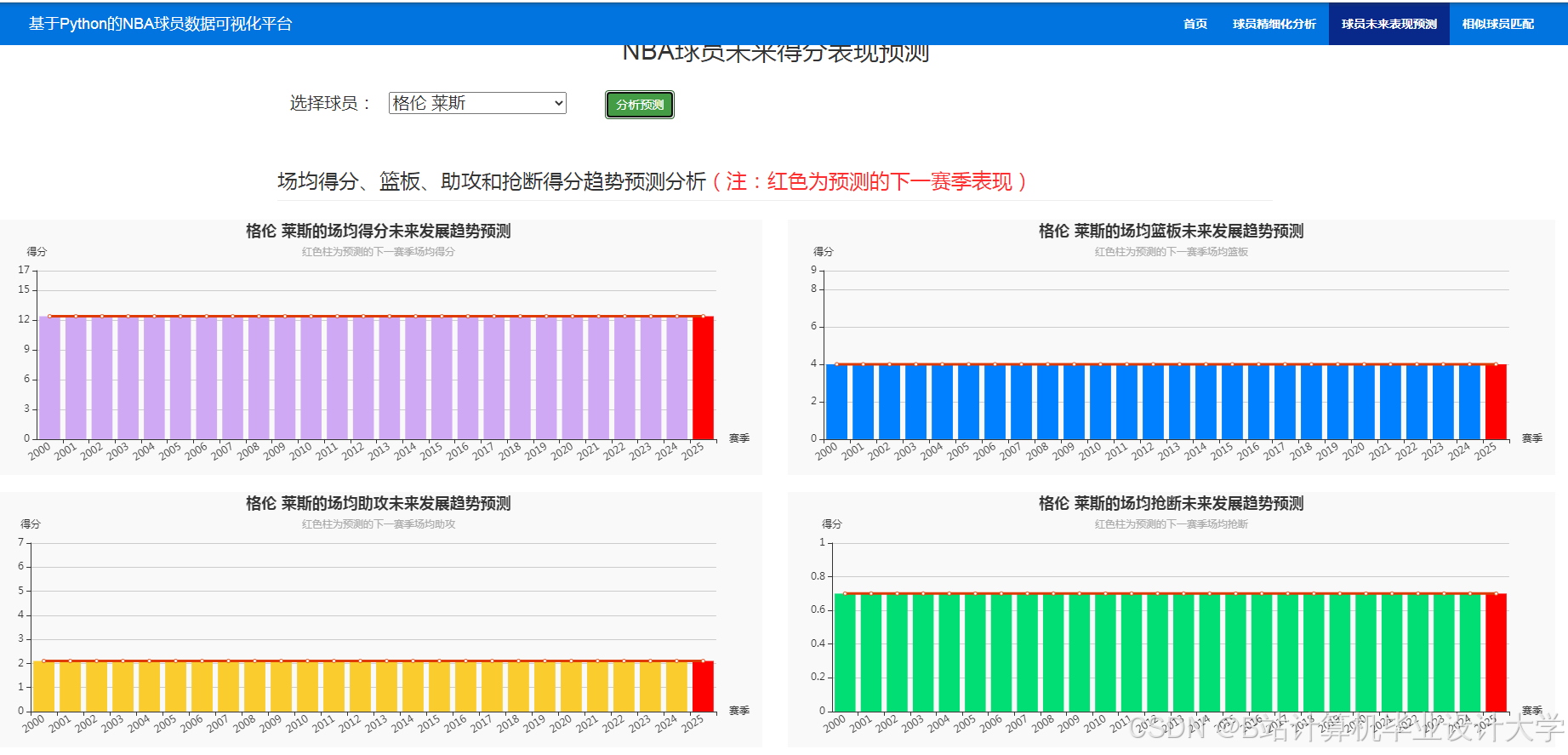 项目名称:基于Python的职业篮球运动员数据分析可视化与球员能力预测系统开发