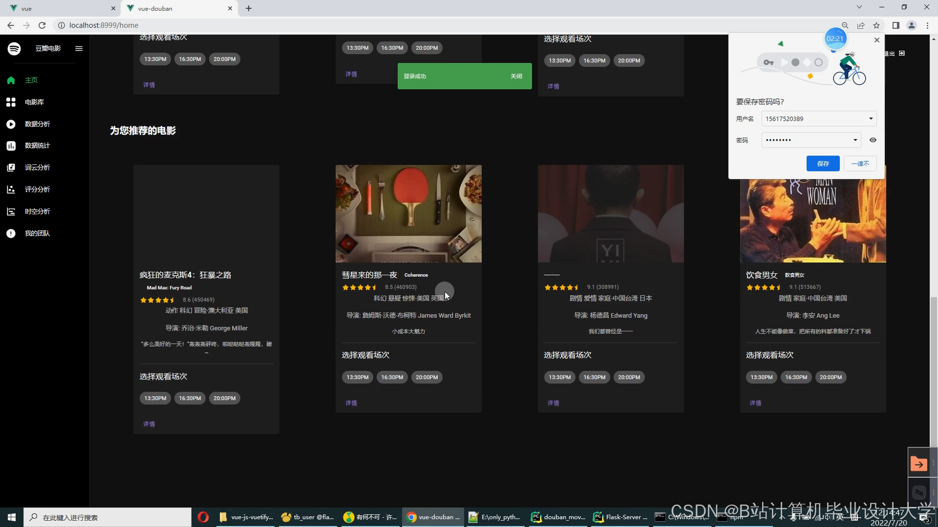 - 使用Vue.js实现响应式界面,包括电影列表展示、推荐结果动态加载、用户评分交互等。