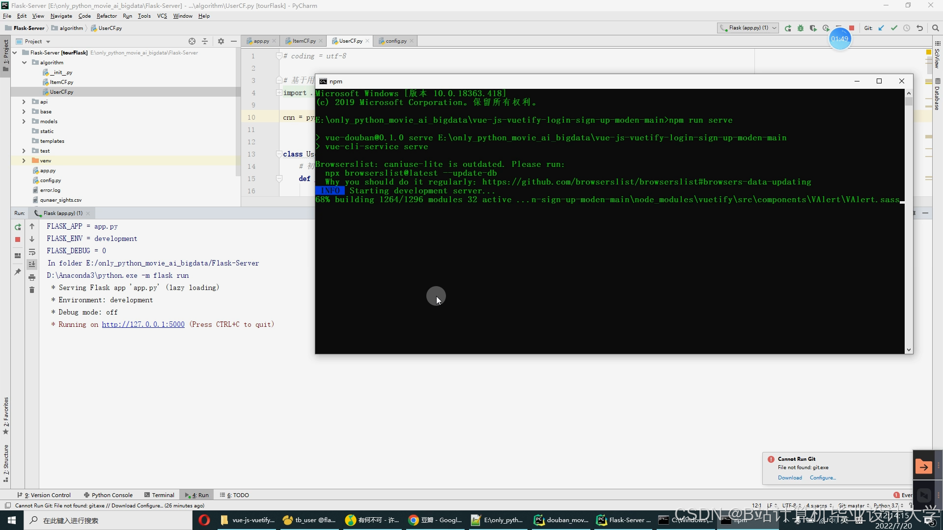 - MySQL 8.0:关系型数据库,存储用户、电影及评分核心数据