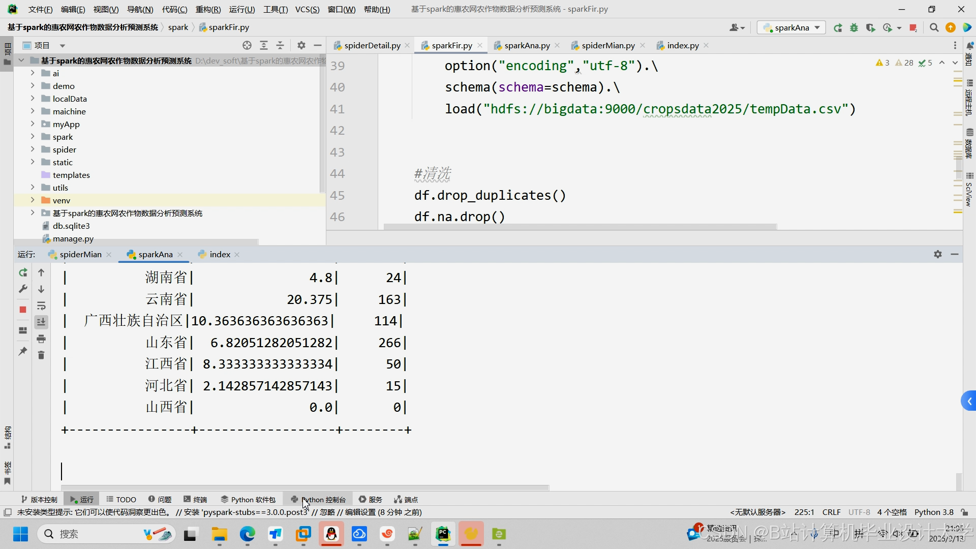 项目名称:基于Spark+Hadoop+Hive+DeepSeek+Django的农产品销量预测、AI问答与数据分析可视化系统开发