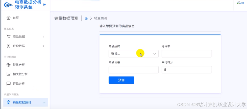 题目:Python电商可视化+销量预测系统及电商评论可视化研究