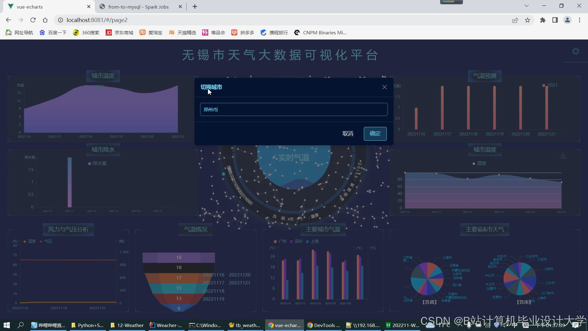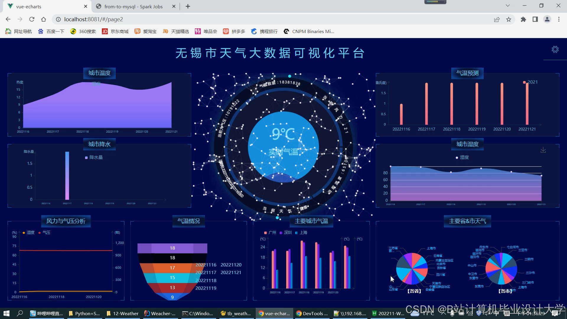 关键词:Hadoop;Spark;Hive;天气预测;大数据;可视化