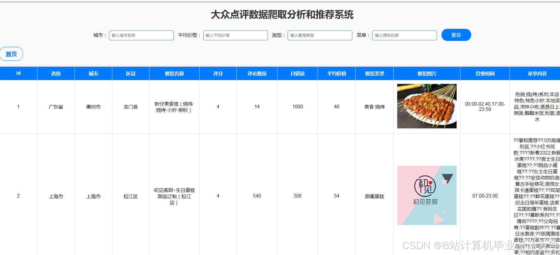 开源项目(如基于Django+Vue.js的豆果美食推荐系统)更注重功能完整性,支持用户注册、菜品分类、收藏反馈等核心功能,但算法透明度不足。例如,某开源系统采用基于内容的推荐算法,通过菜品关键词匹配生成推荐列表,但未公开特征提取与相似度计算逻辑。