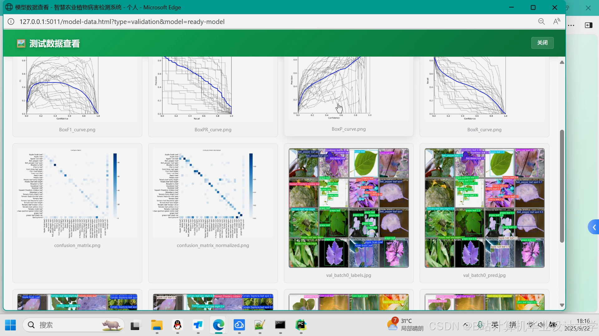 - 前端界面:开发Web/移动端应用,支持图像上传、实时检测结果展示、病害信息查询等功能。