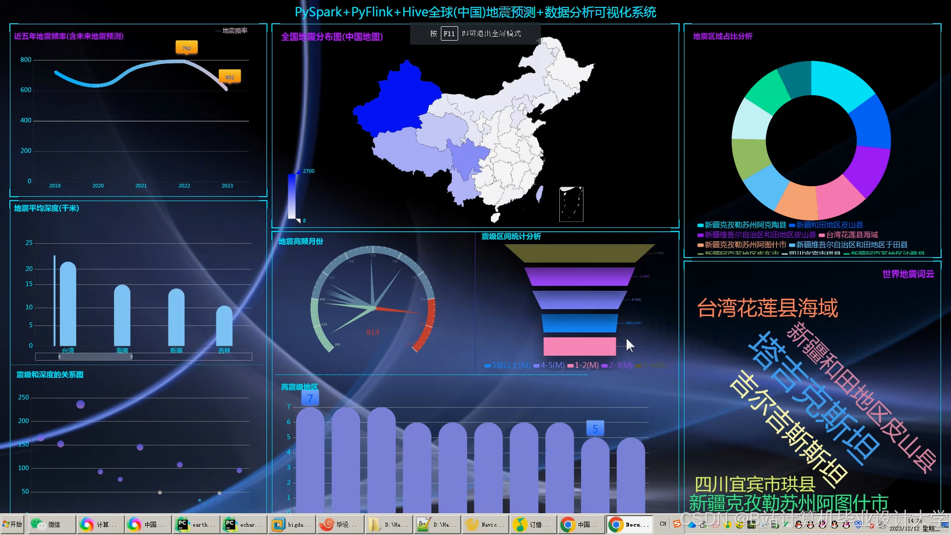 关键词:地震预测;Hadoop;Spark;Hive;混合模型;可视化分析