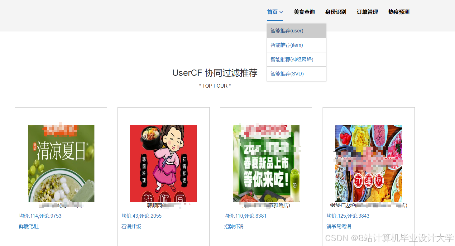- 特征利用不足:仅依赖用户评分或简单行为数据,忽略评论情感、商家属性(如菜系、价格)、地理位置等多维特征;