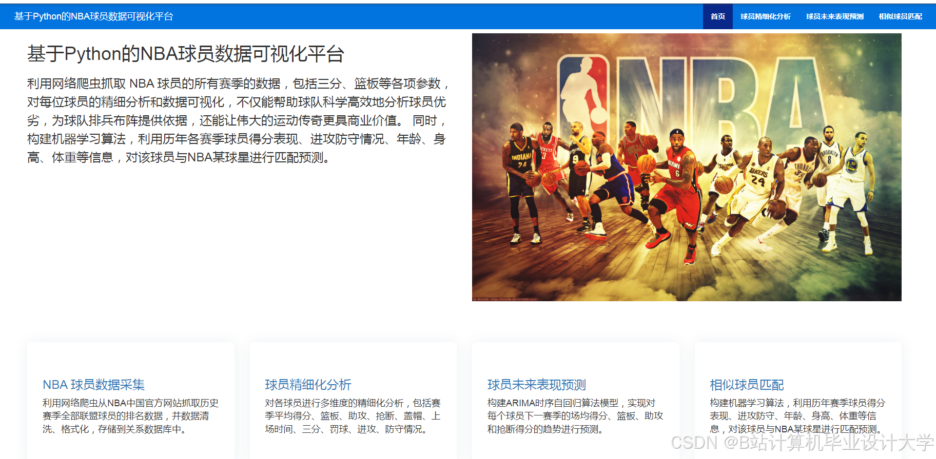 - 系统原型:开发Web端可视化系统,支持NBA全量球员数据实时查询(数据规模:500+球员×10年历史);