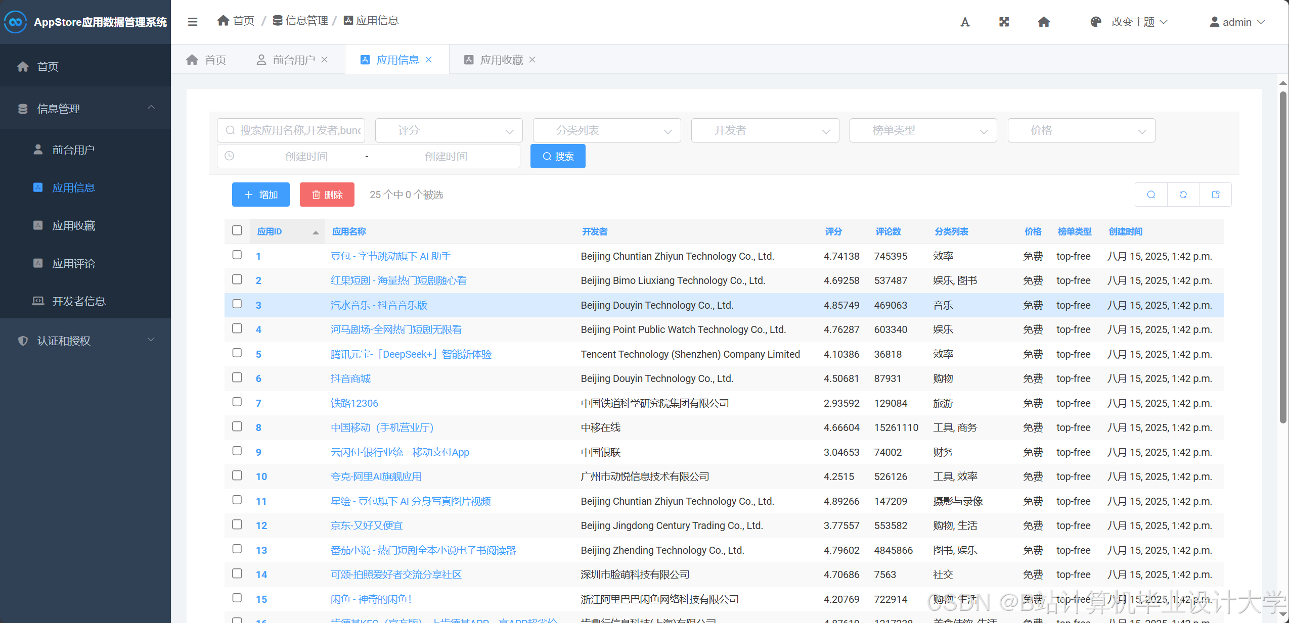 题目:Django+Vue.js之AppStore应用榜单数据可视化分析与应用推荐系统