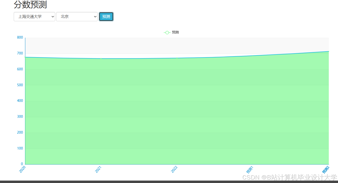 - 录取分数线趋势分析:ECharts折线图对比近5年一本线变化,支持按省份、文理科筛选。