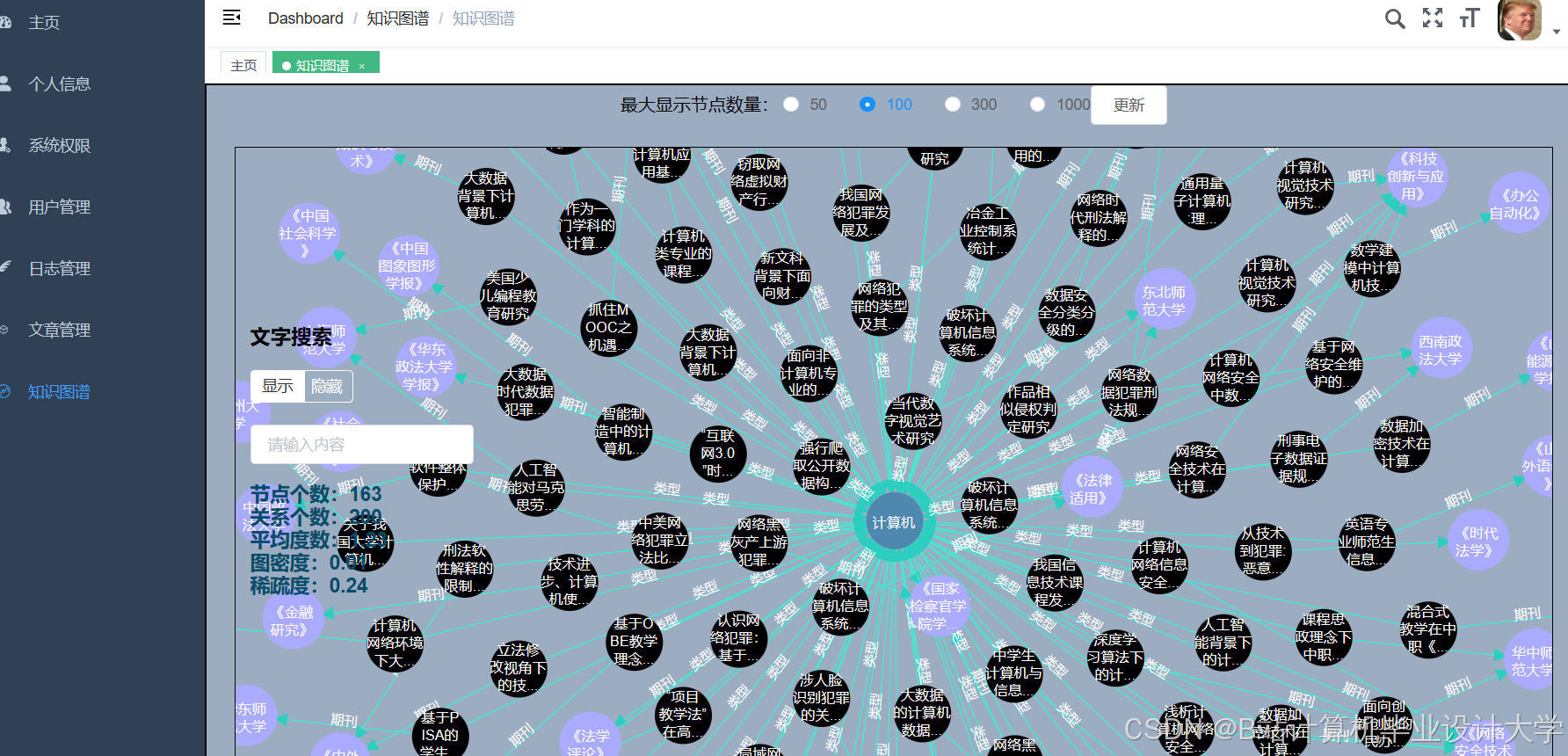 - 数据采集:使用Scrapy框架抓取知网论文元数据(标题、作者、摘要、关键词、引用关系)及用户行为数据(浏览、收藏、下载记录)。