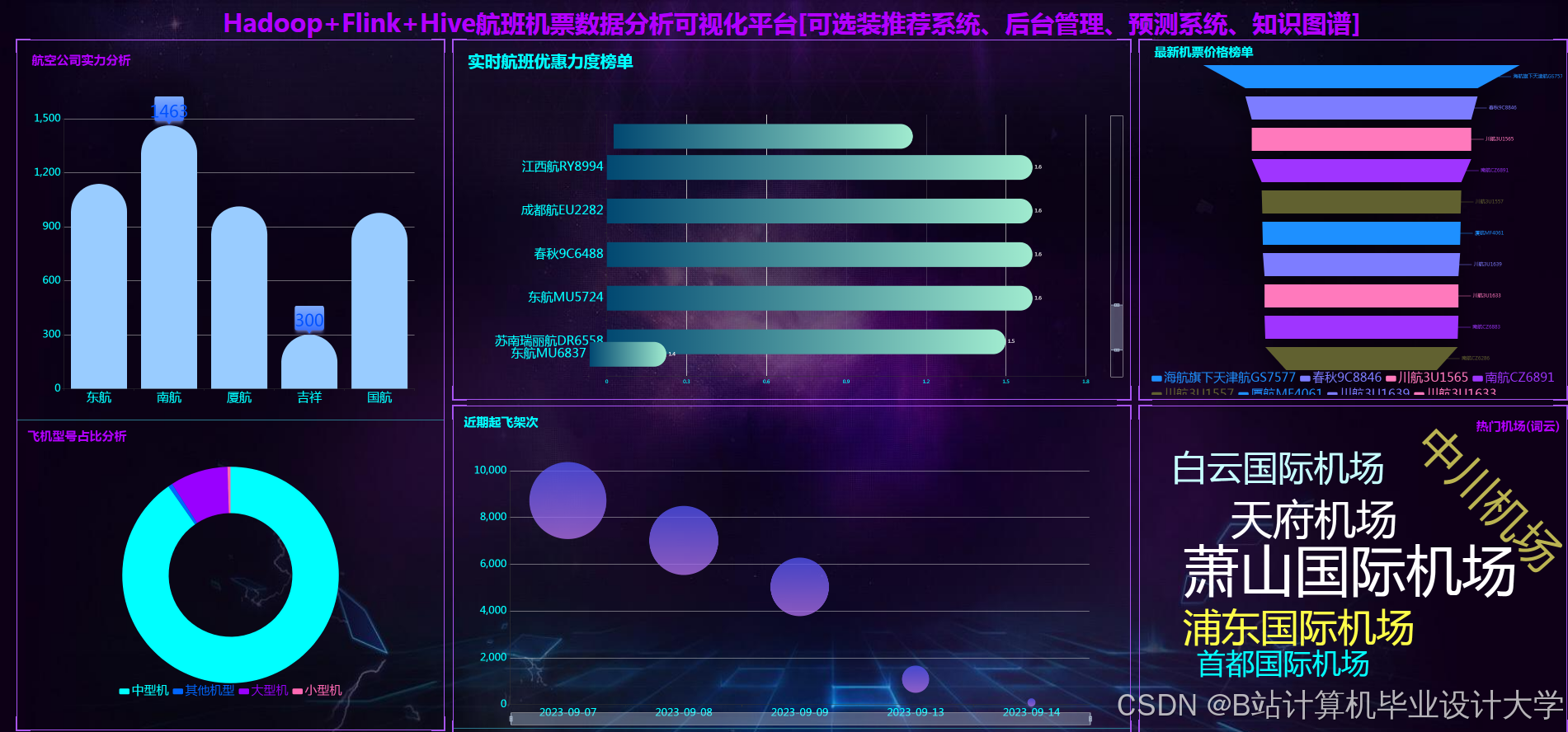 - Hive数据仓库:通过外部表映射HDFS数据,支持SQL查询效率较传统MapReduce提升5-8倍。定义用户行为表(搜索记录、点击行为等),按航线、日期分区存储,优化查询性能。