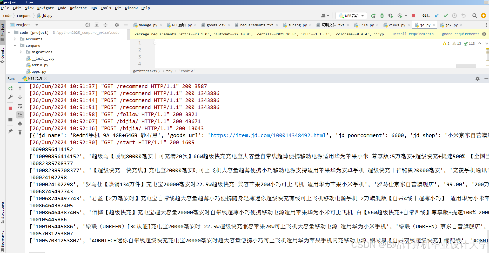 随着电子商务规模持续扩张,全球电商交易额预计2025年突破7万亿美元,商品SKU数量呈指数级增长。在此背景下,商品推荐系统与比价系统成为提升用户体验、优化市场资源配置的核心工具。Python凭借其丰富的机器学习库(如PyTorch、TensorFlow)和成熟的Web开发框架(如Django、FastAPI),成为该领域的主流技术栈。本文从技术架构、算法创新、工程实践三个维度,系统梳理基于Python的商品推荐与比价系统的研究进展,并探讨未来发展方向。