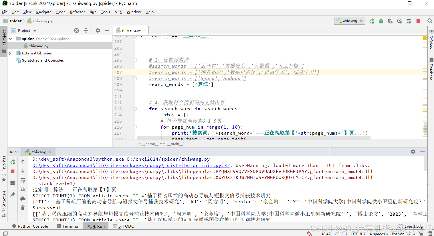 - 使用Scrapy框架构建分布式爬虫,模拟用户登录、搜索等操作,从知网平台抓取论文数据。