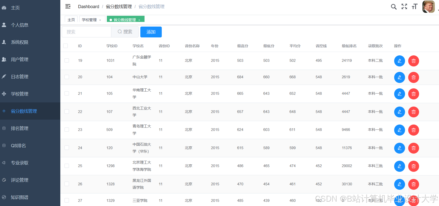 - Web服务:基于Spring Boot开发RESTful API,提供数据查询与推荐结果生成服务。例如,考生提交个人信息后,后端调用集成学习模型预测目标院校分数线,并将结果封装为JSON格式返回前端展示。