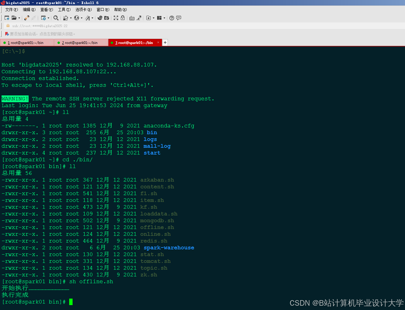 - 软件版本:Hadoop 3.3.4、Spark 3.3.2、Kafka 3.6.0、Hive 3.1.3