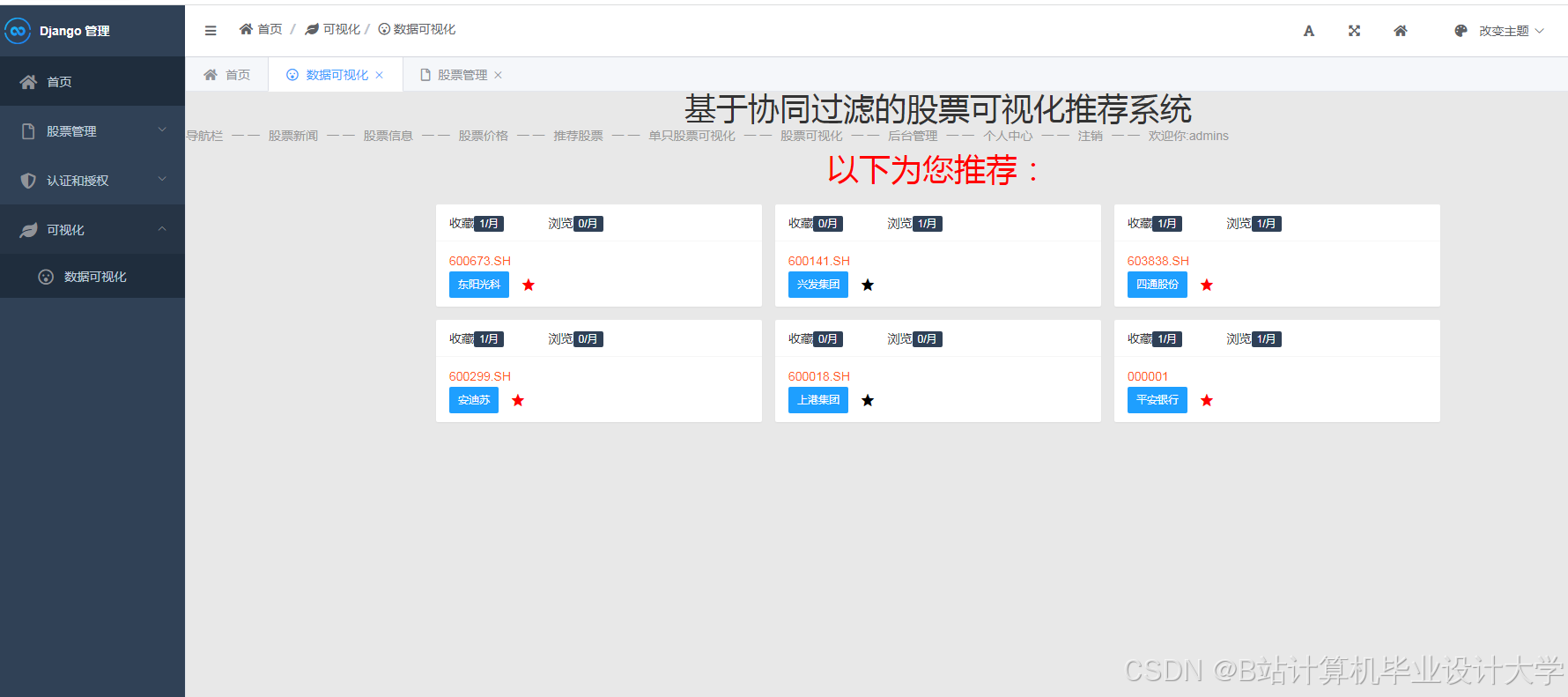 全球股票市场日均交易量突破万亿美元的背景下,传统CAPM模型在解释复杂市场波动时面临失效风险。投资者亟需智能化工具辅助决策,但现有系统存在三大缺陷:单一模型预测误差率超15%、推荐算法冷启动问题严重、系统架构扩展性不足。本研究创新性地提出"数据-模型-推荐"三层架构,通过Django实现前后端分离,TensorFlow构建深度学习模型,形成从数据采集到策略生成的完整闭环。