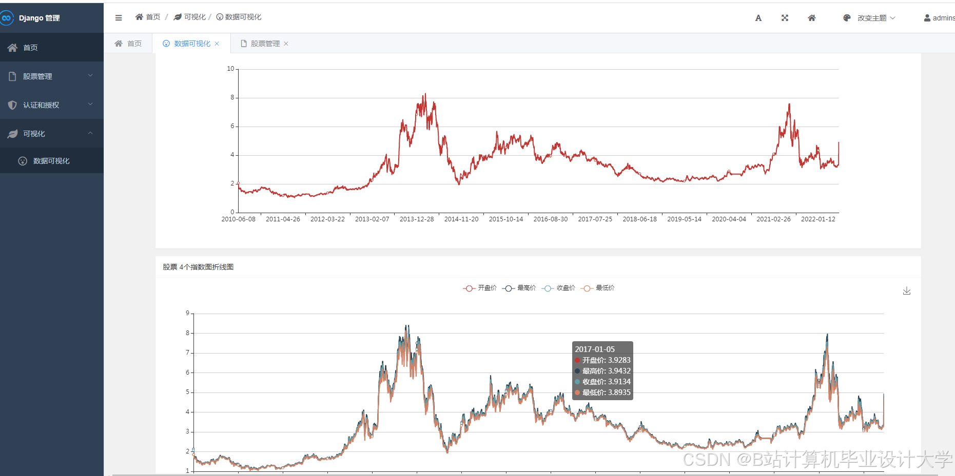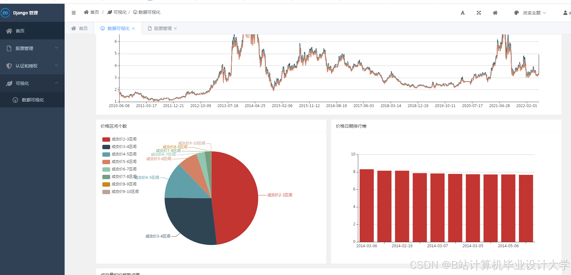 - 后端服务:Django RESTful API提供用户认证、数据查询、模型预测等接口,响应时间<200ms。例如,某系统通过Django的信号机制实现用户持仓变动时的实时风险预警。