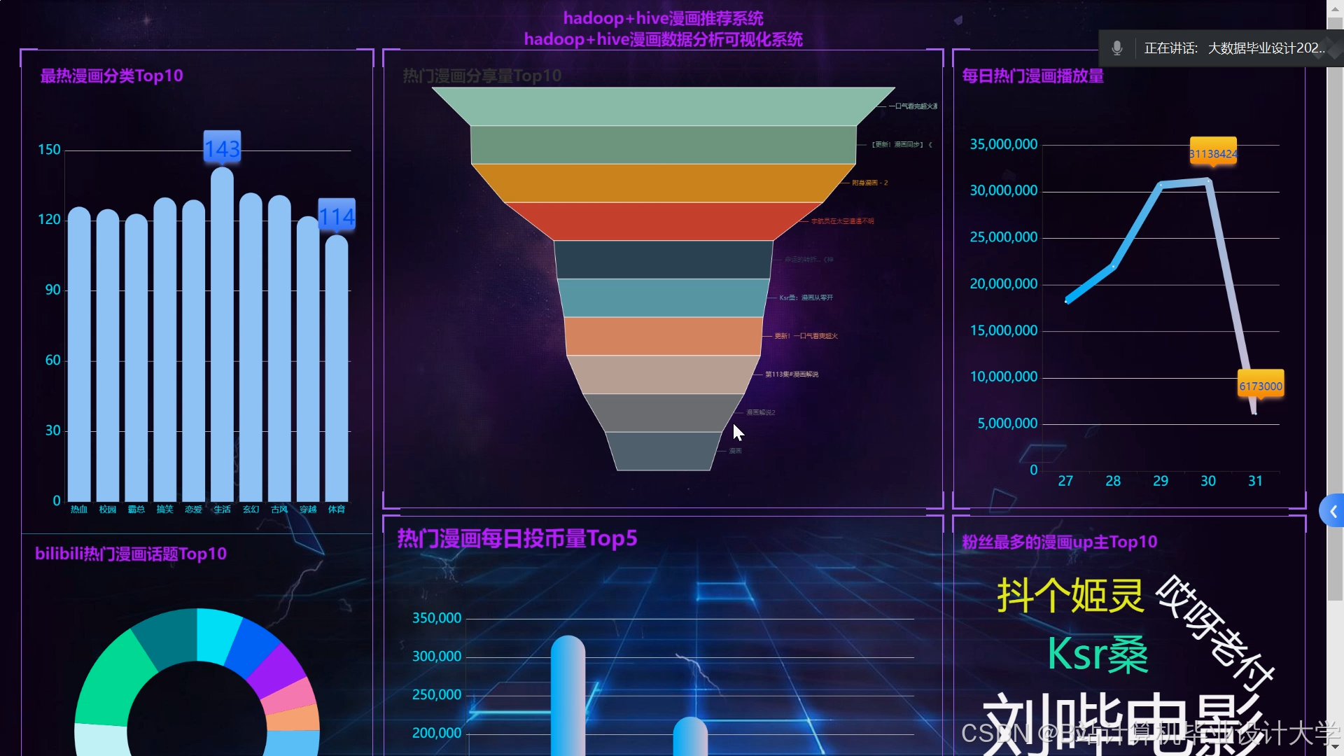 以下是一份关于《Hadoop+Spark+Hive动漫推荐系统(漫画推荐系统)》的任务书模板,结合大数据处理与推荐算法设计,供参考: